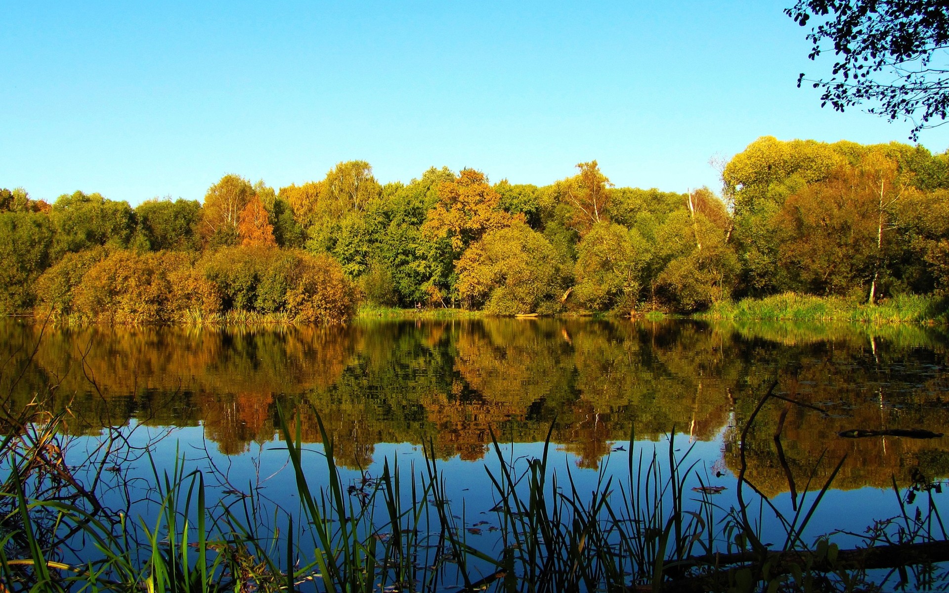 Скачать обои для рабочего стола У озера деревья и фото