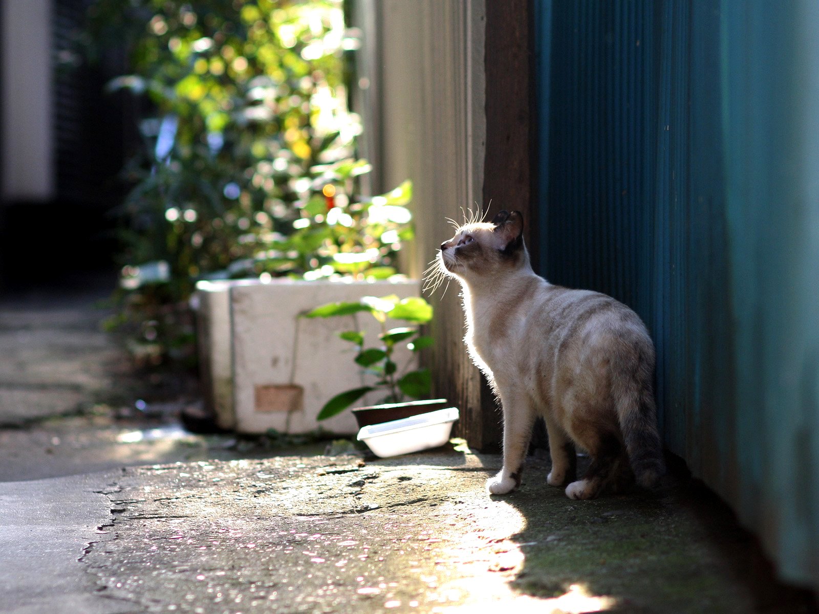 Скачать обои для рабочего стола У пустой тарелки кошечка и фото