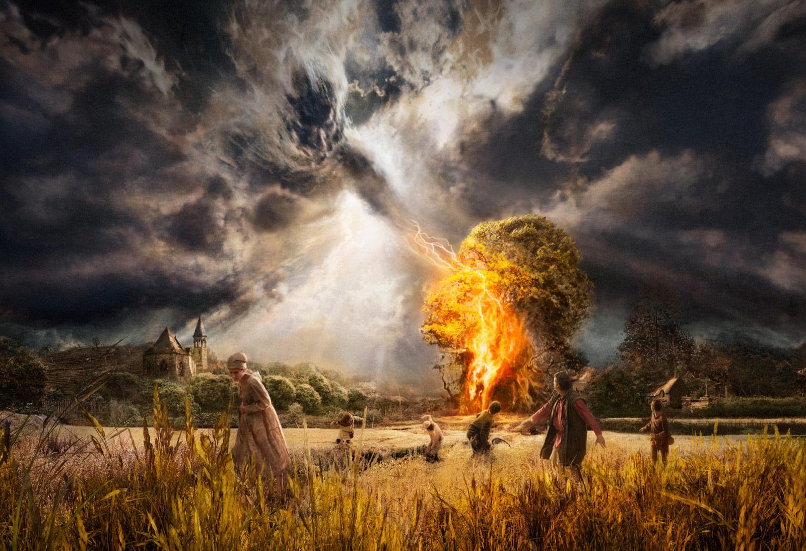 Скачать обои для рабочего стола Удар молнии в дерево и фото