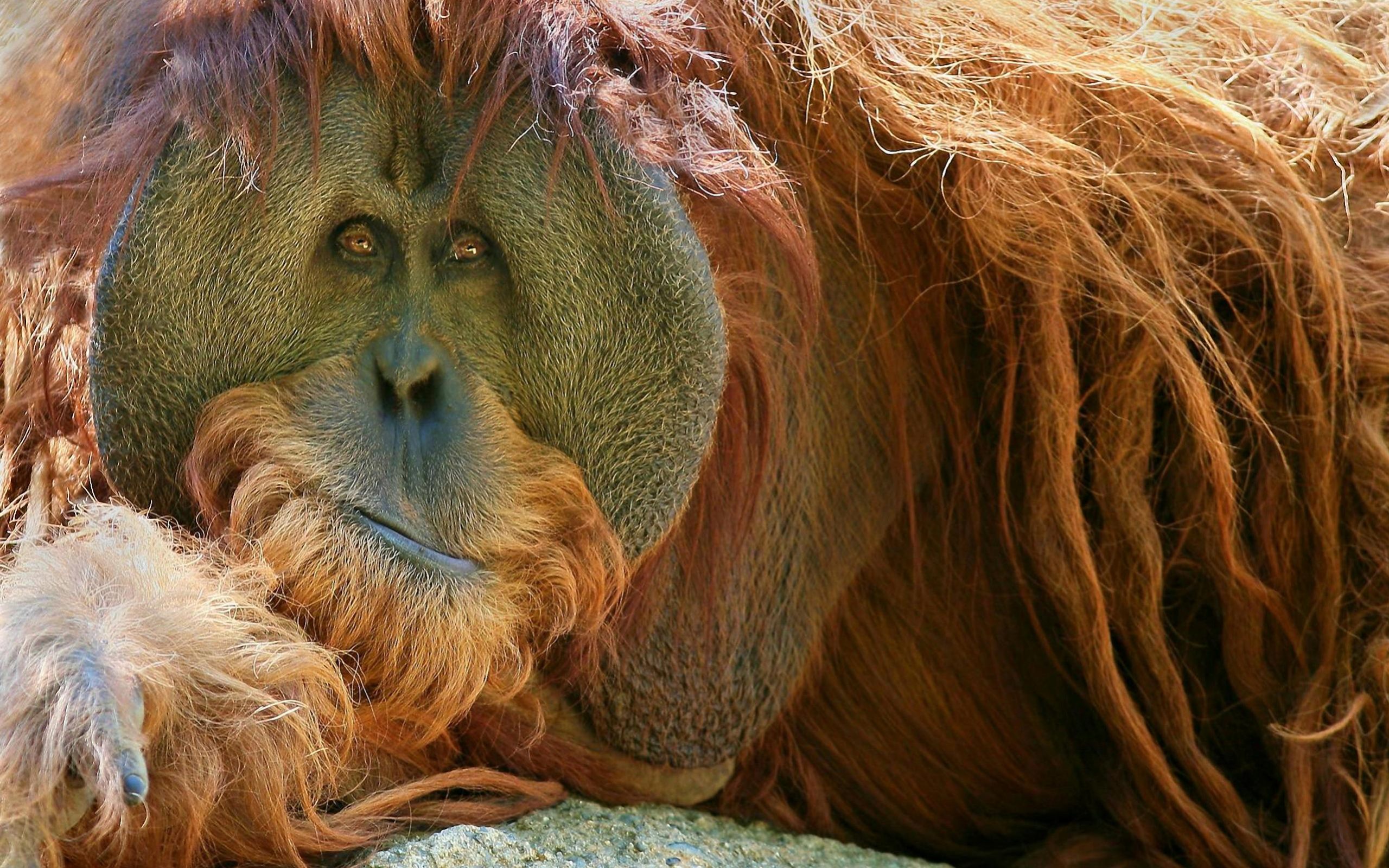 Скачать обои для рабочего стола Угрюмый орангутанг и фото