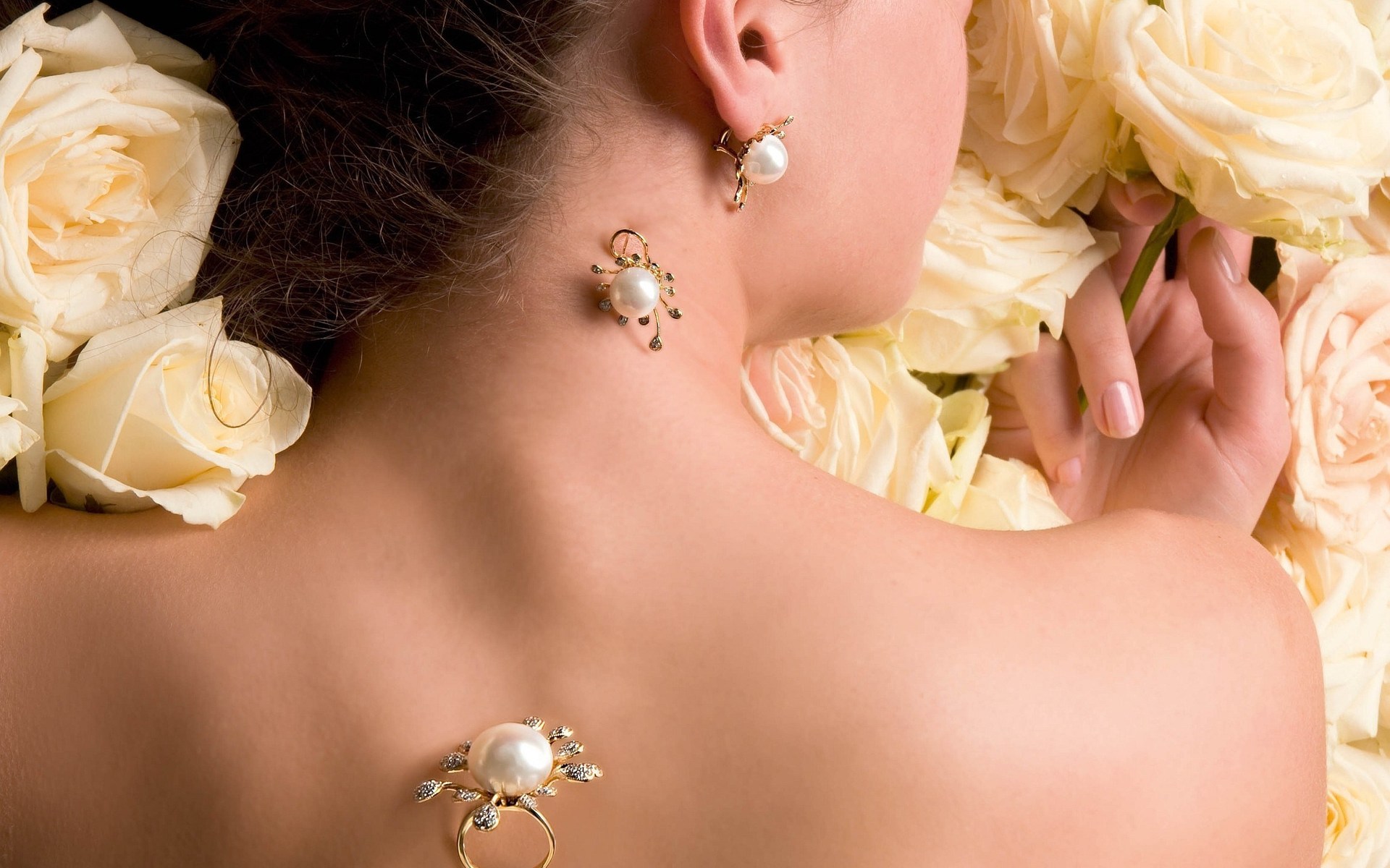 Похожие обои на Украшения на девушке в кремoвых розах: