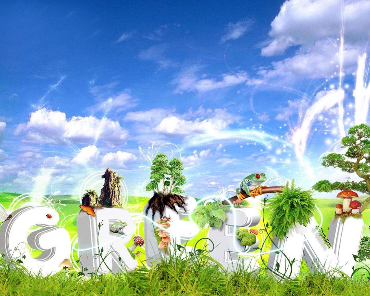 Скачать обои для рабочего стола Украшенные буквы GREEN и фото