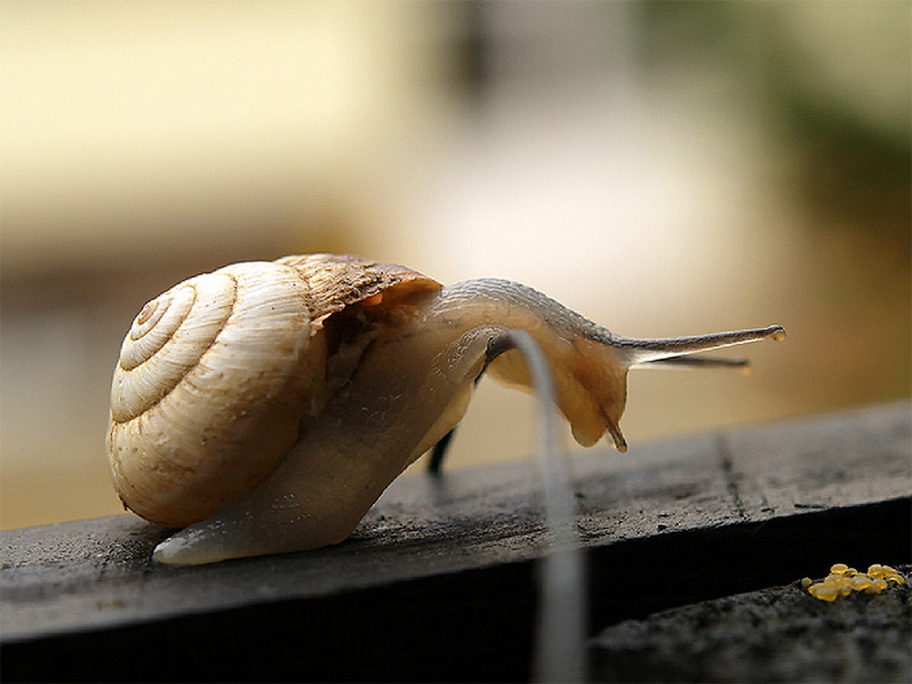 Скачать обои для рабочего стола Улитка медленно переползает препятствие и фото