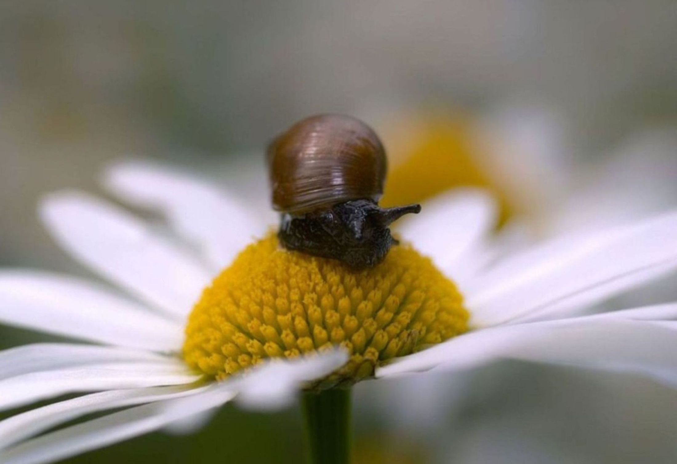 Похожие обои на Улитка на ромашке: