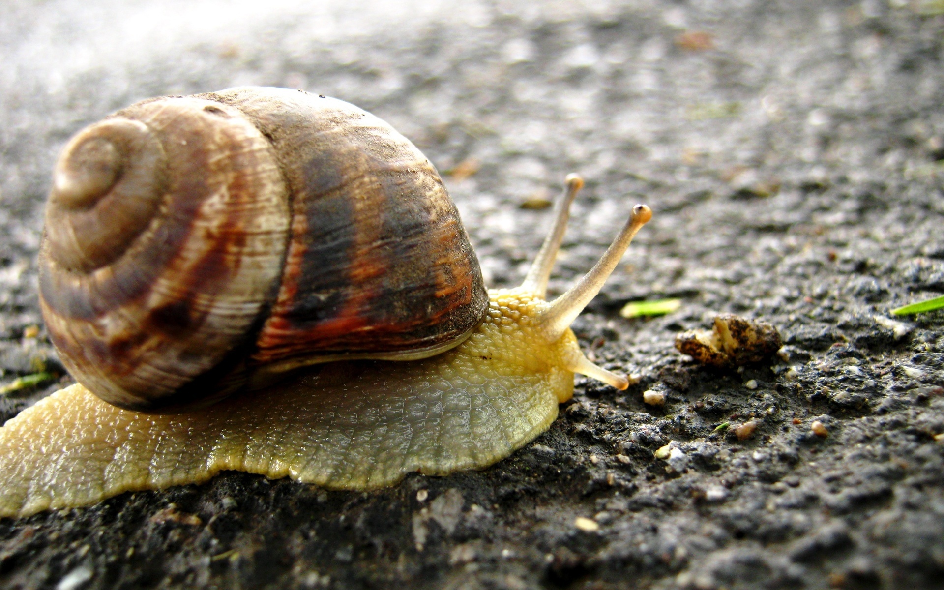 Скачать обои для рабочего стола Улитка шагает по асфальту и фото