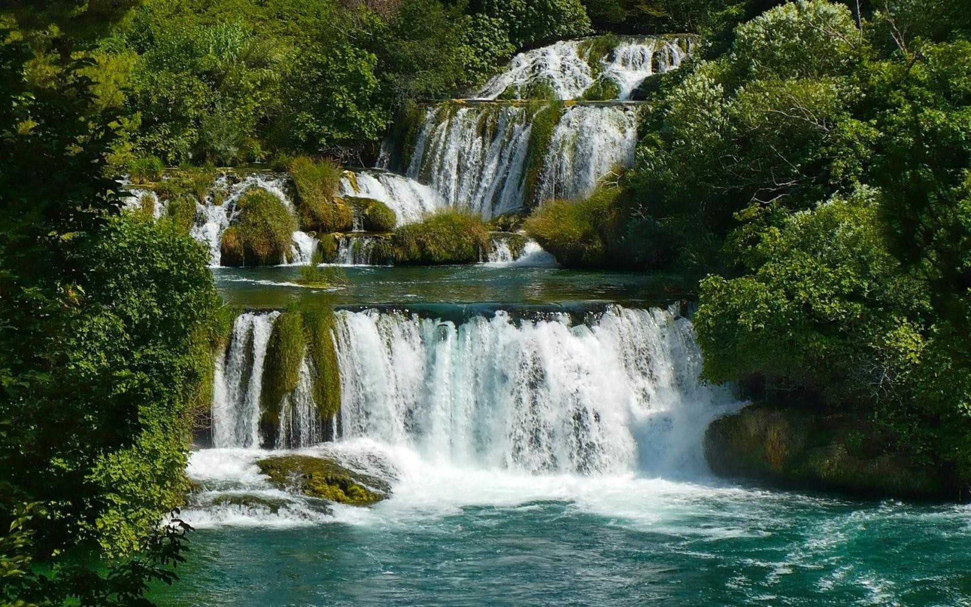 Скачать обои для рабочего стола Уровни водопада на реке и фото