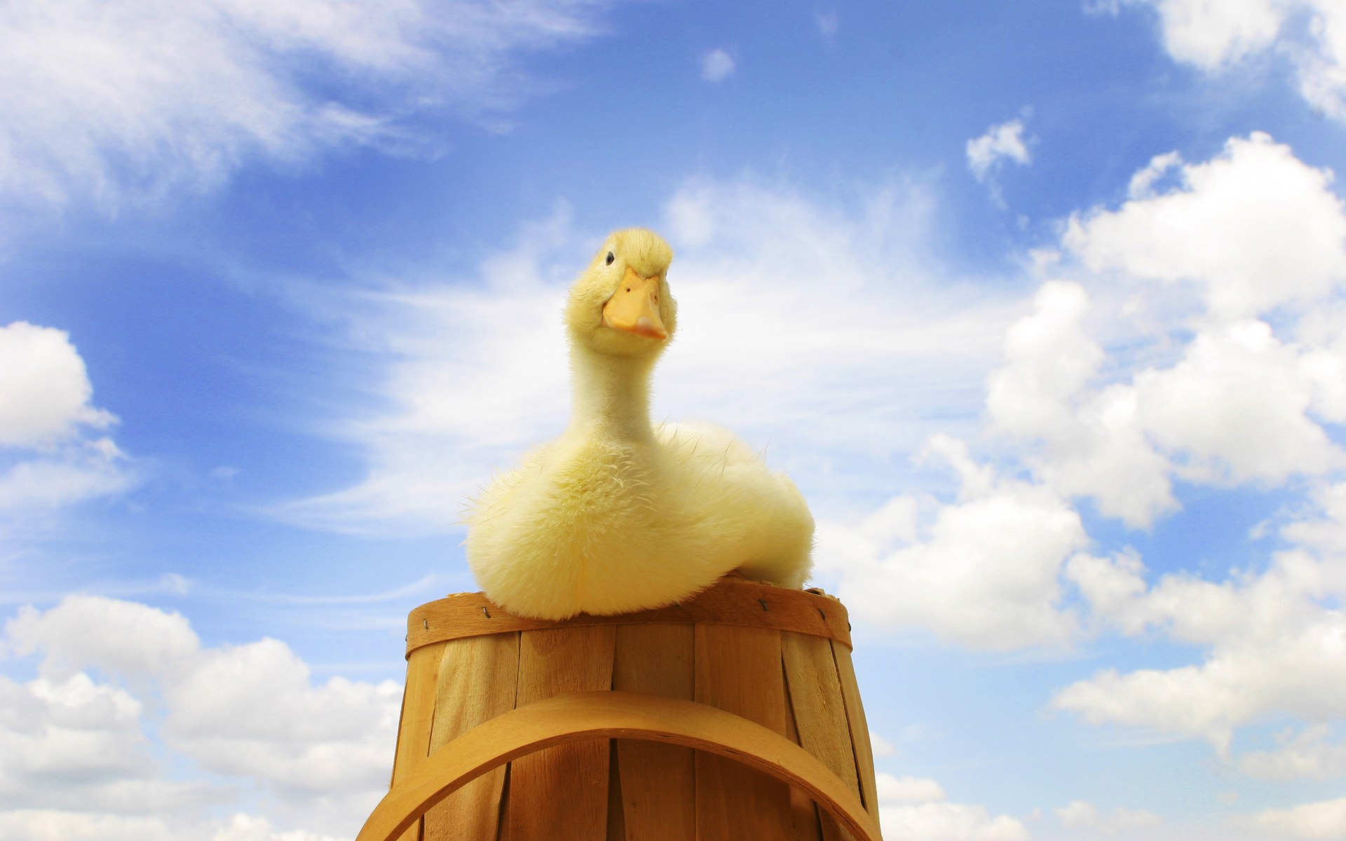 Скачать обои для рабочего стола Утка вылазящая из бочки и фото