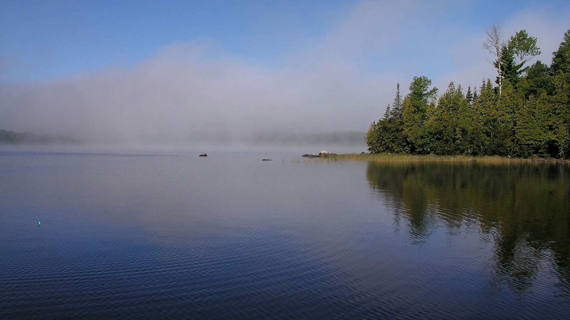 Скачать обои для рабочего стола Утренее озеро и туман и фото