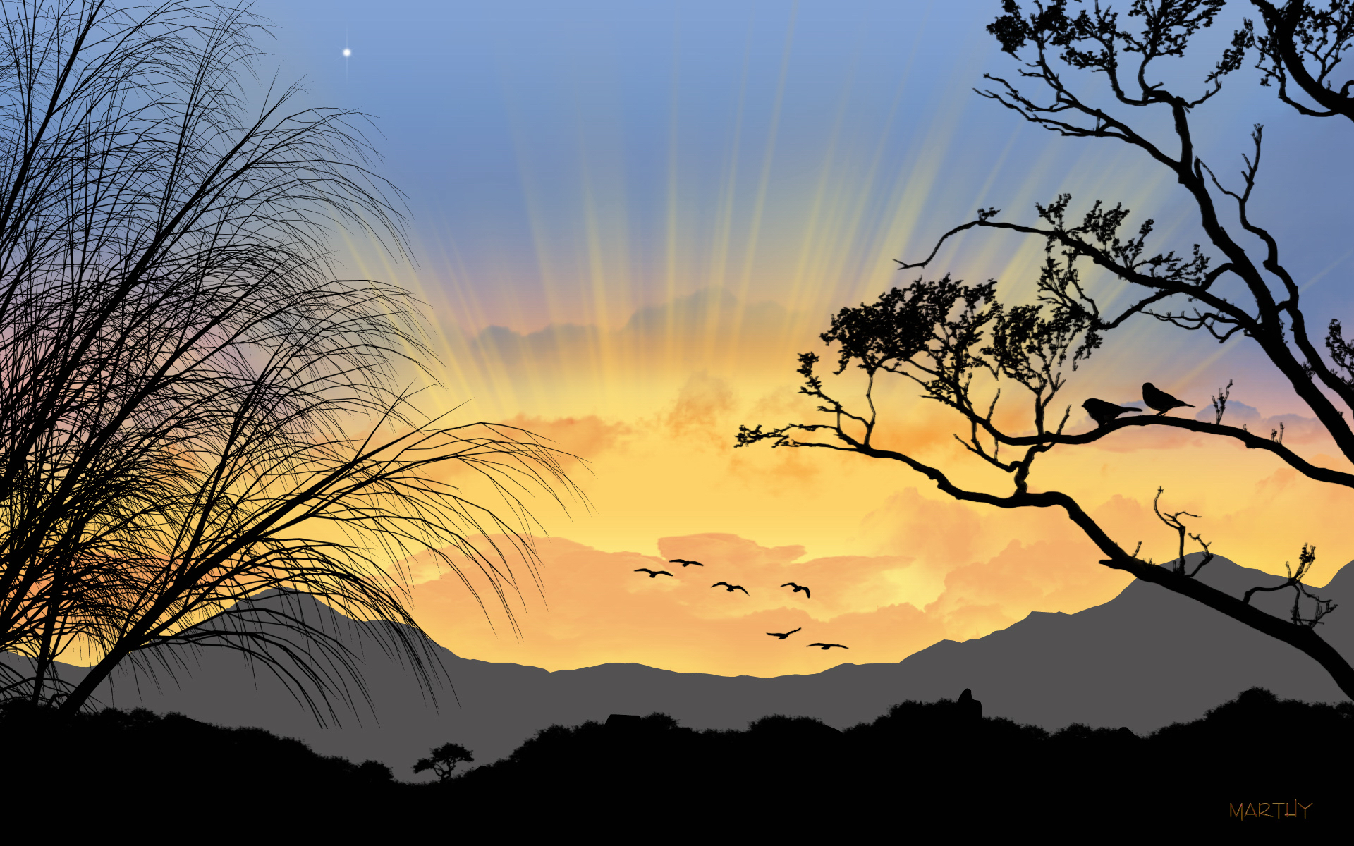 Обои Утренние лучики солнца из за гор
