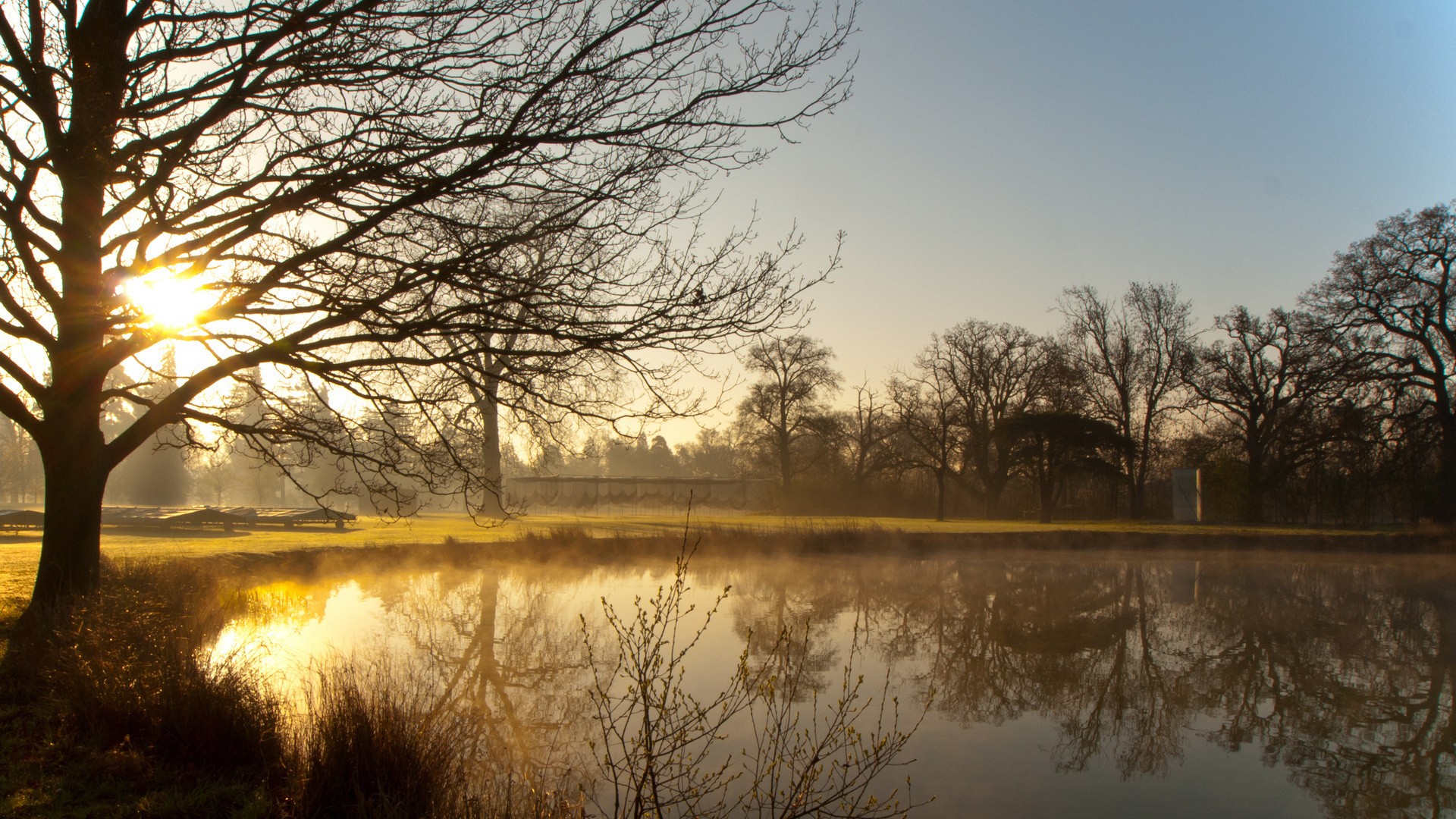 Похожие обои на Утренний туман над весенним прудом: