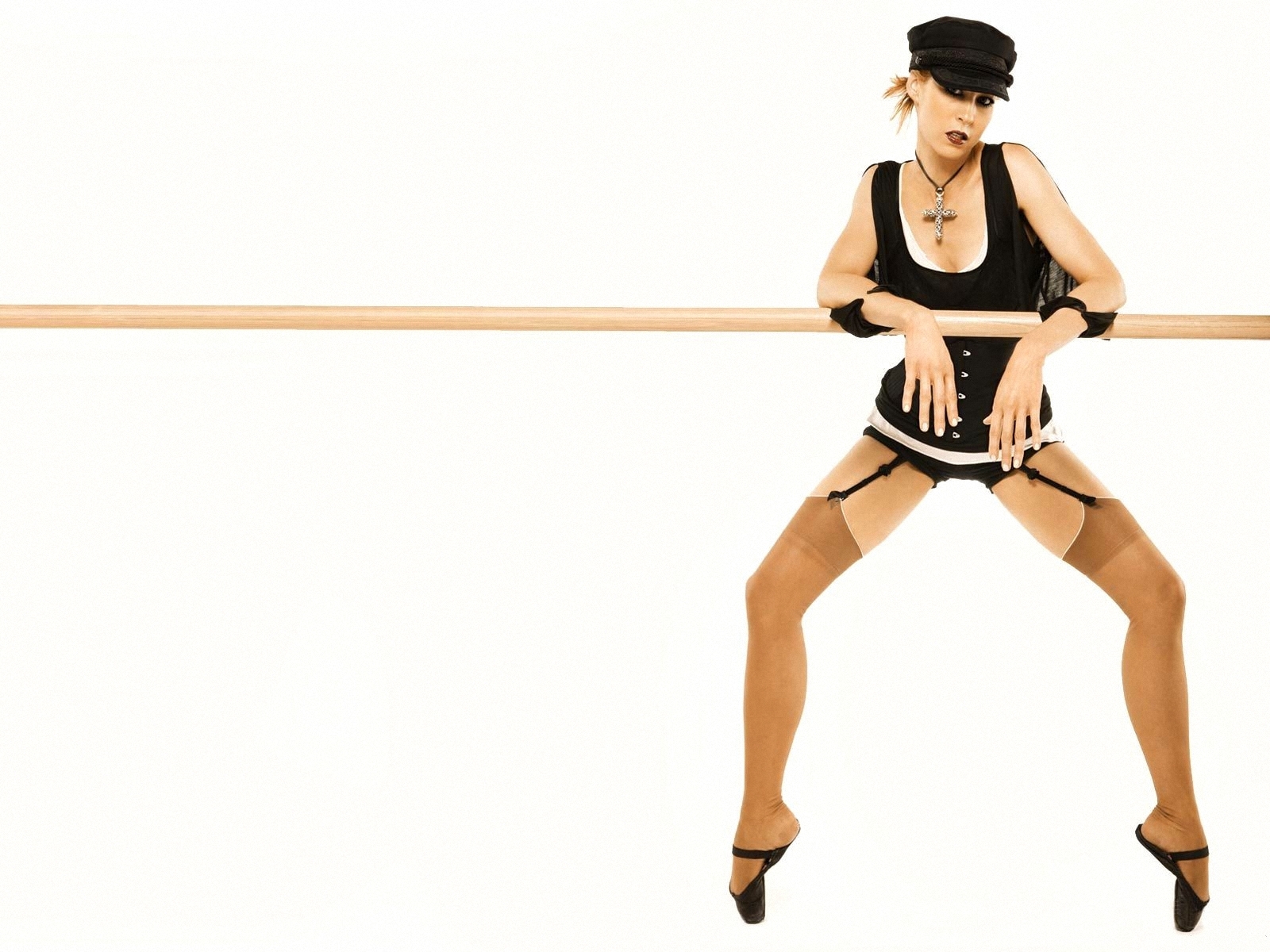 Скачать обои для рабочего стола В чулках на перекладине и фото