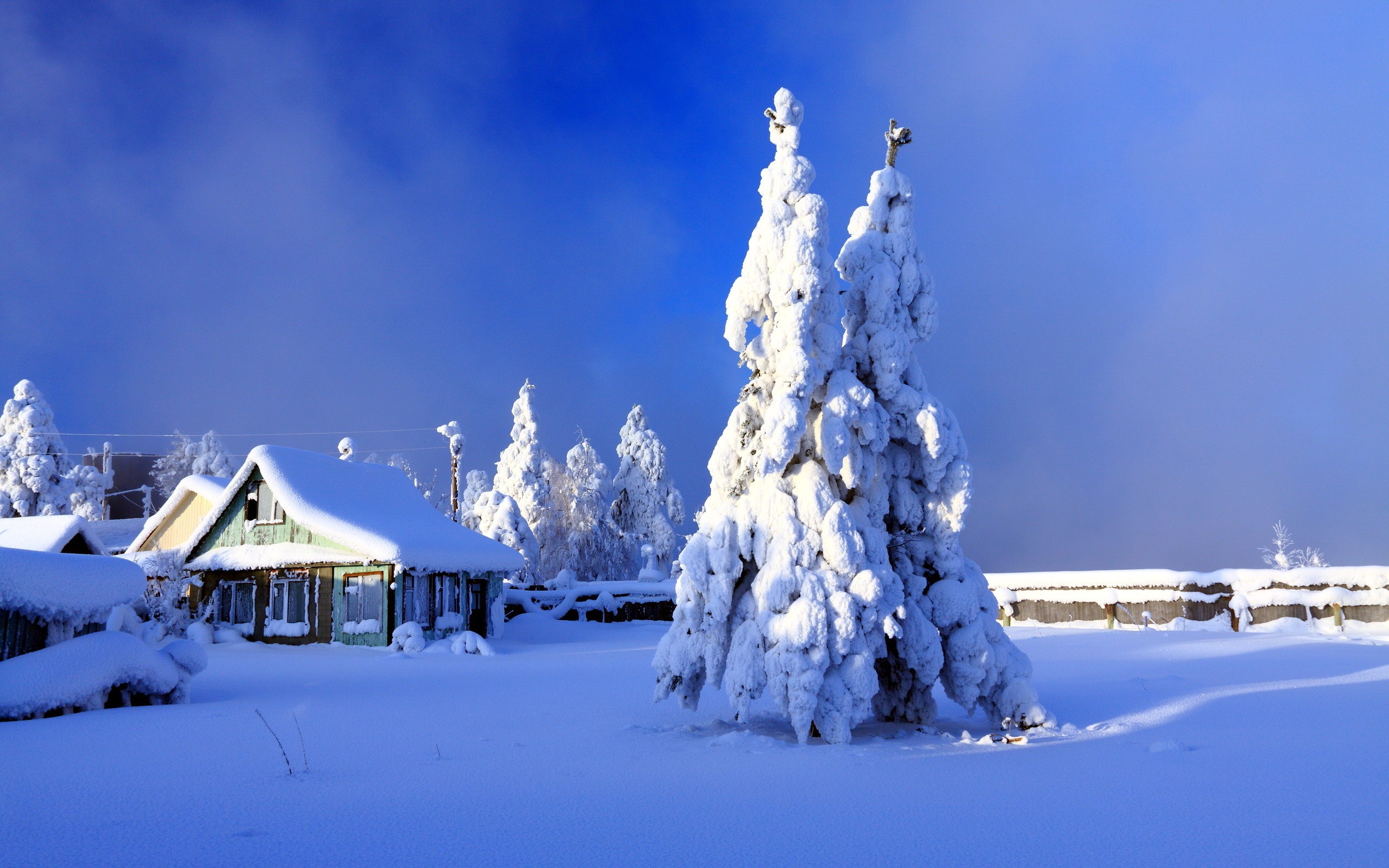Скачать обои для рабочего стола В деревне после обильного снегопада и фото