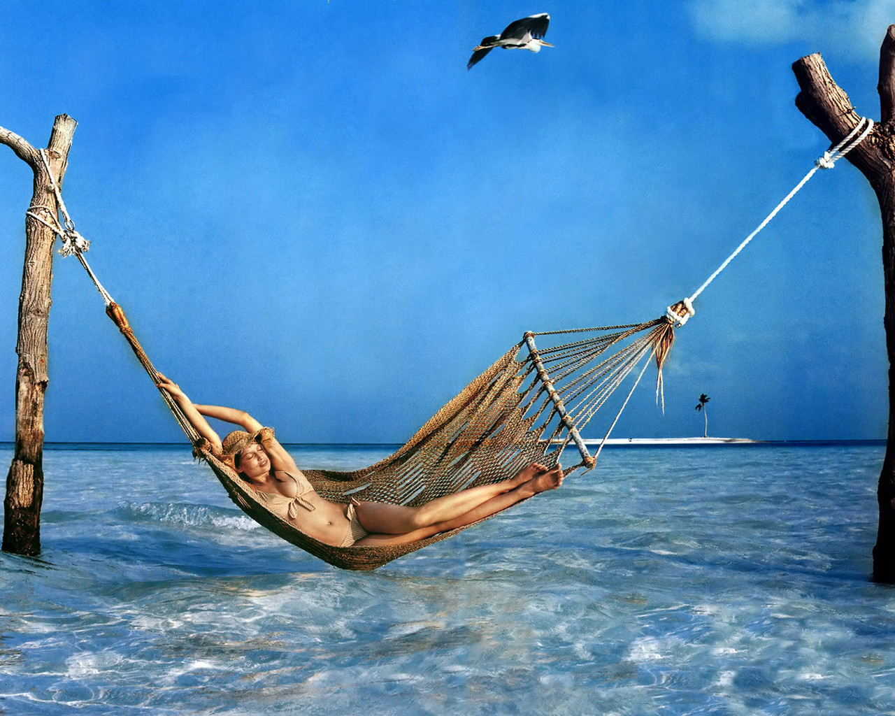 Скачать обои для рабочего стола В гамаке над морем и фото