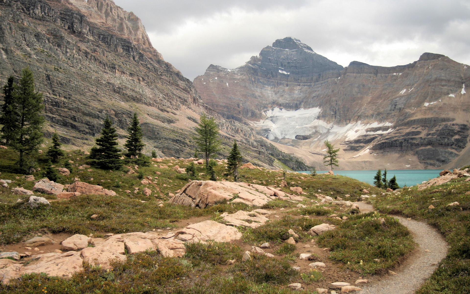 Скачать обои для рабочего стола В горах у озера и фото