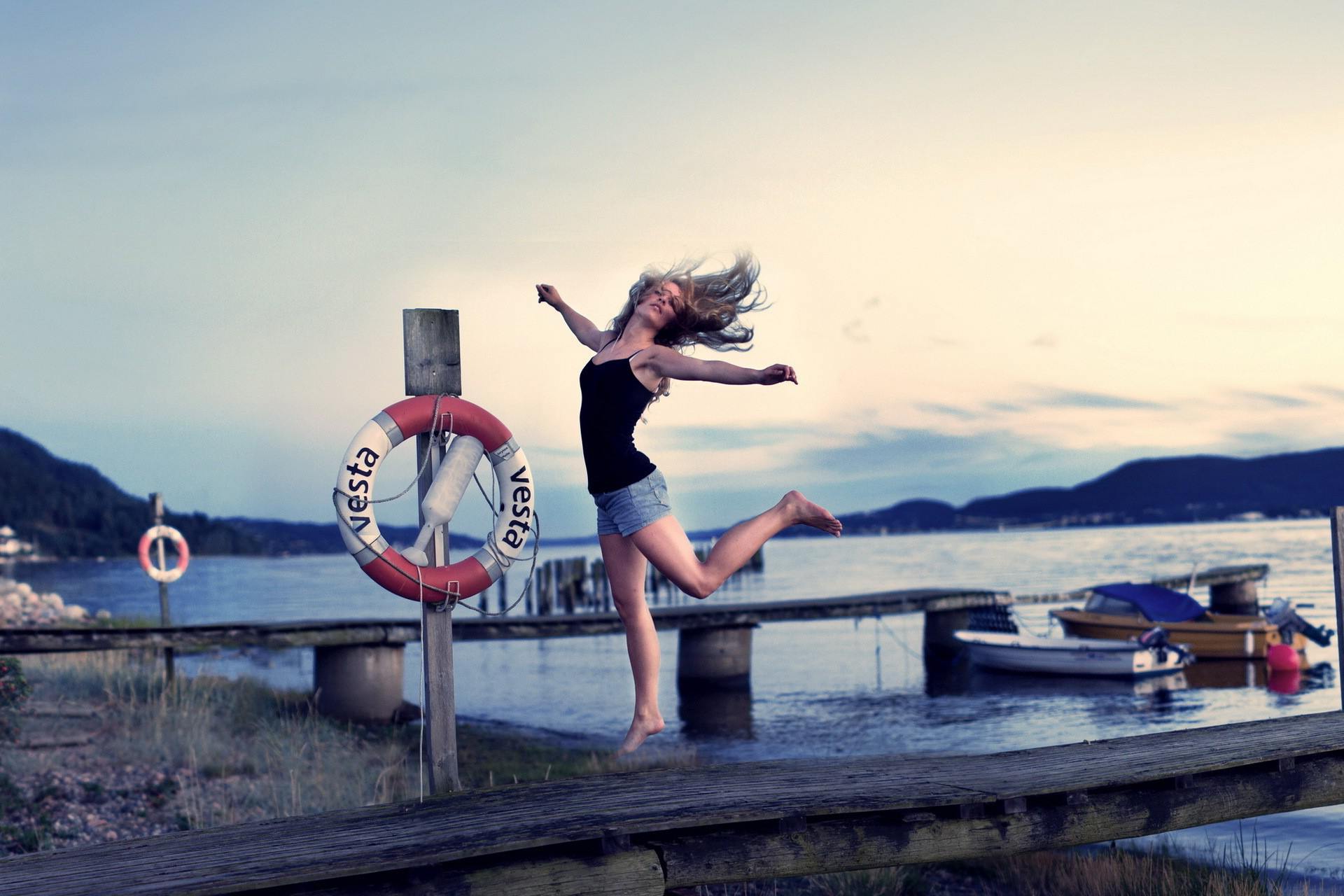 Скачать обои для рабочего стола В прыжке на причале и фото