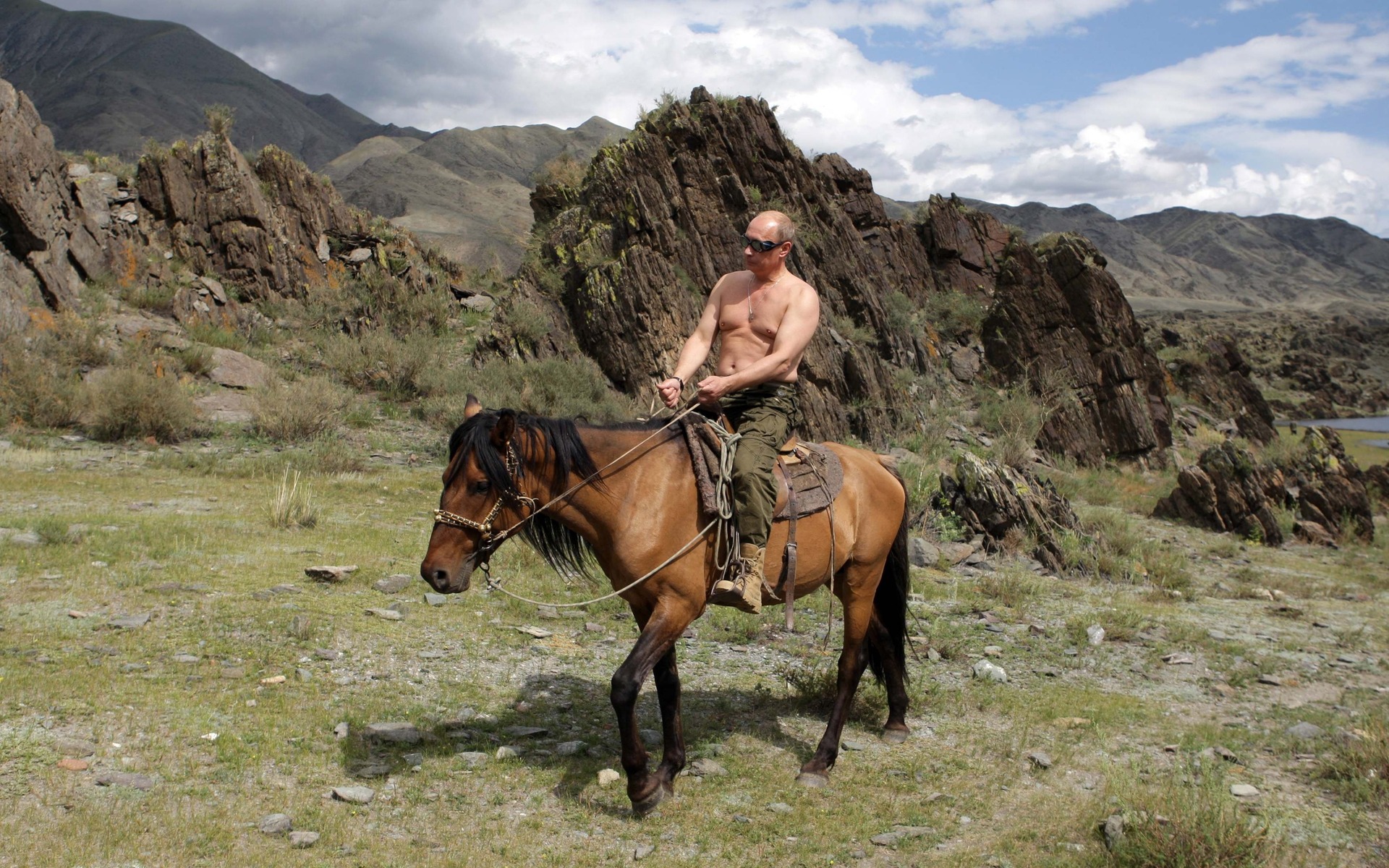 Скачать обои для рабочего стола В.ПУТИН на лошади и фото