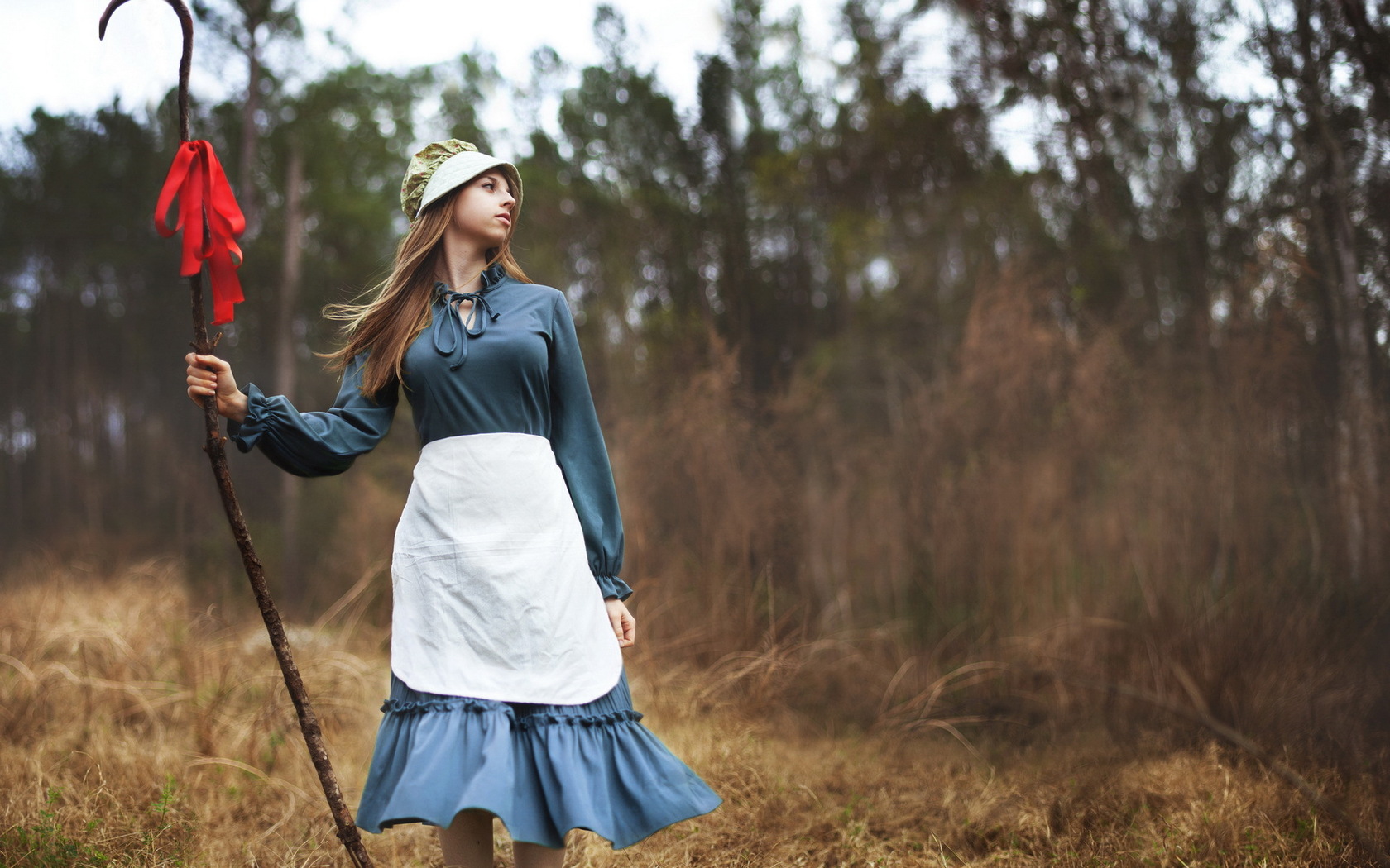 Скачать обои для рабочего стола В руках посох с красной ленточкой и фото