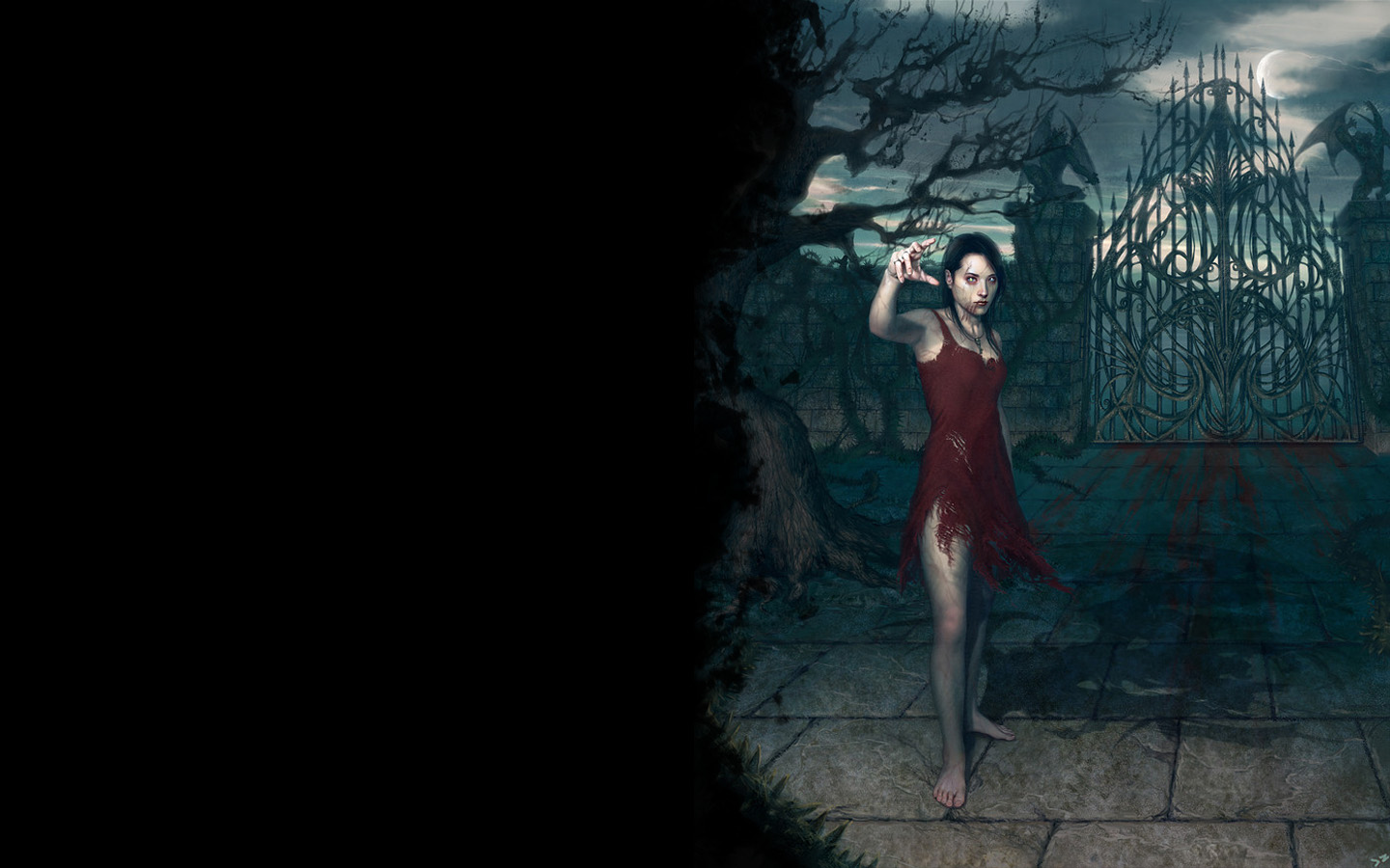 Скачать обои для рабочего стола Вампирша в красном платье и фото