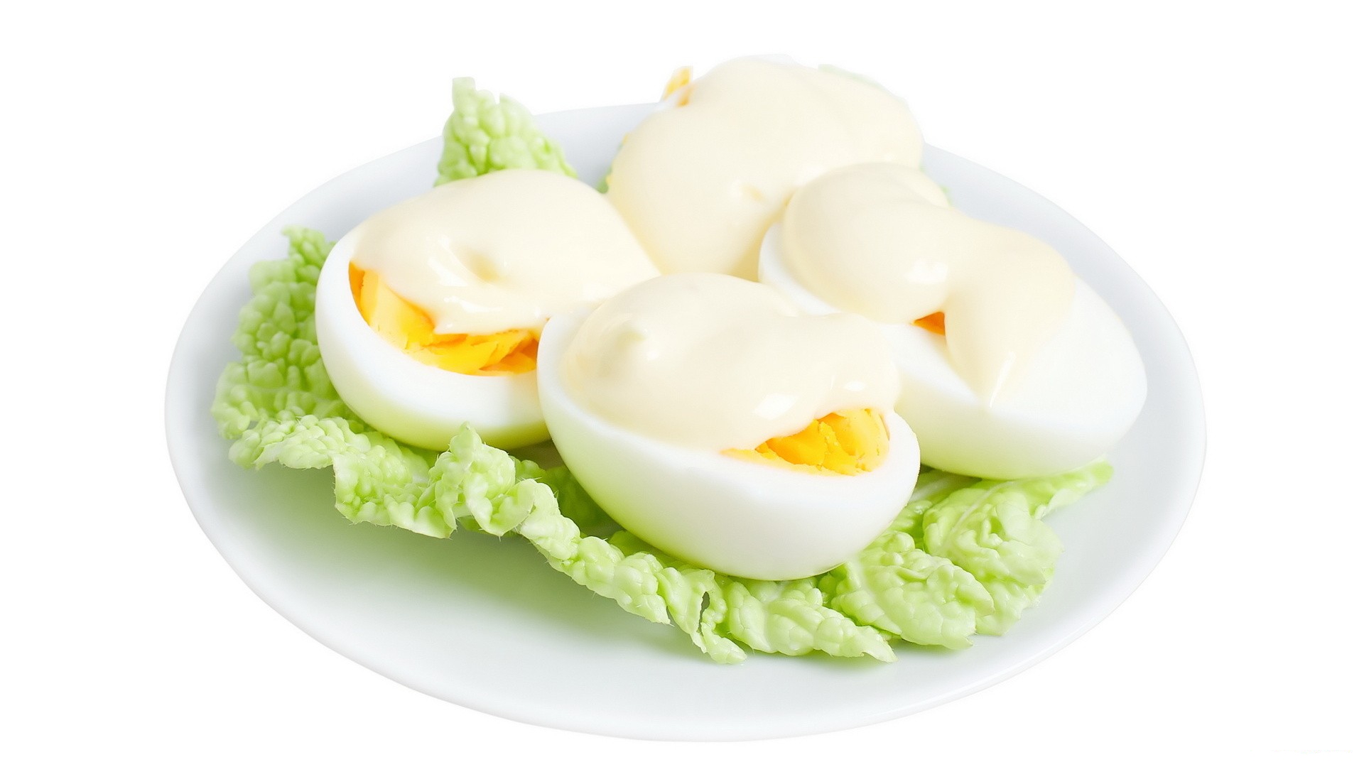 Скачать обои для рабочего стола Вареные яйца с майонезом и фото