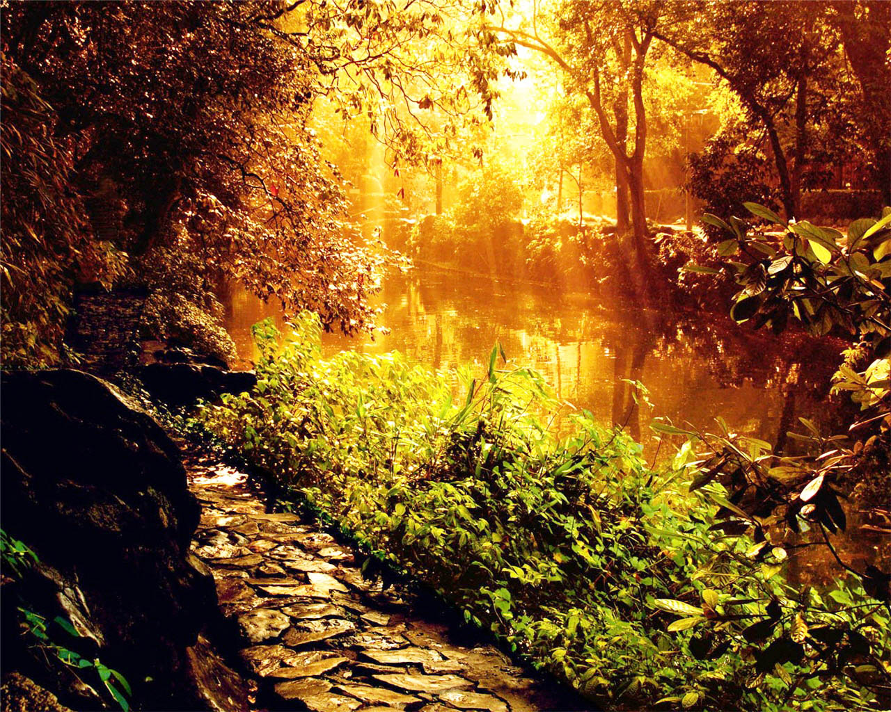 Скачать обои для рабочего стола Вечер в лесу и фото