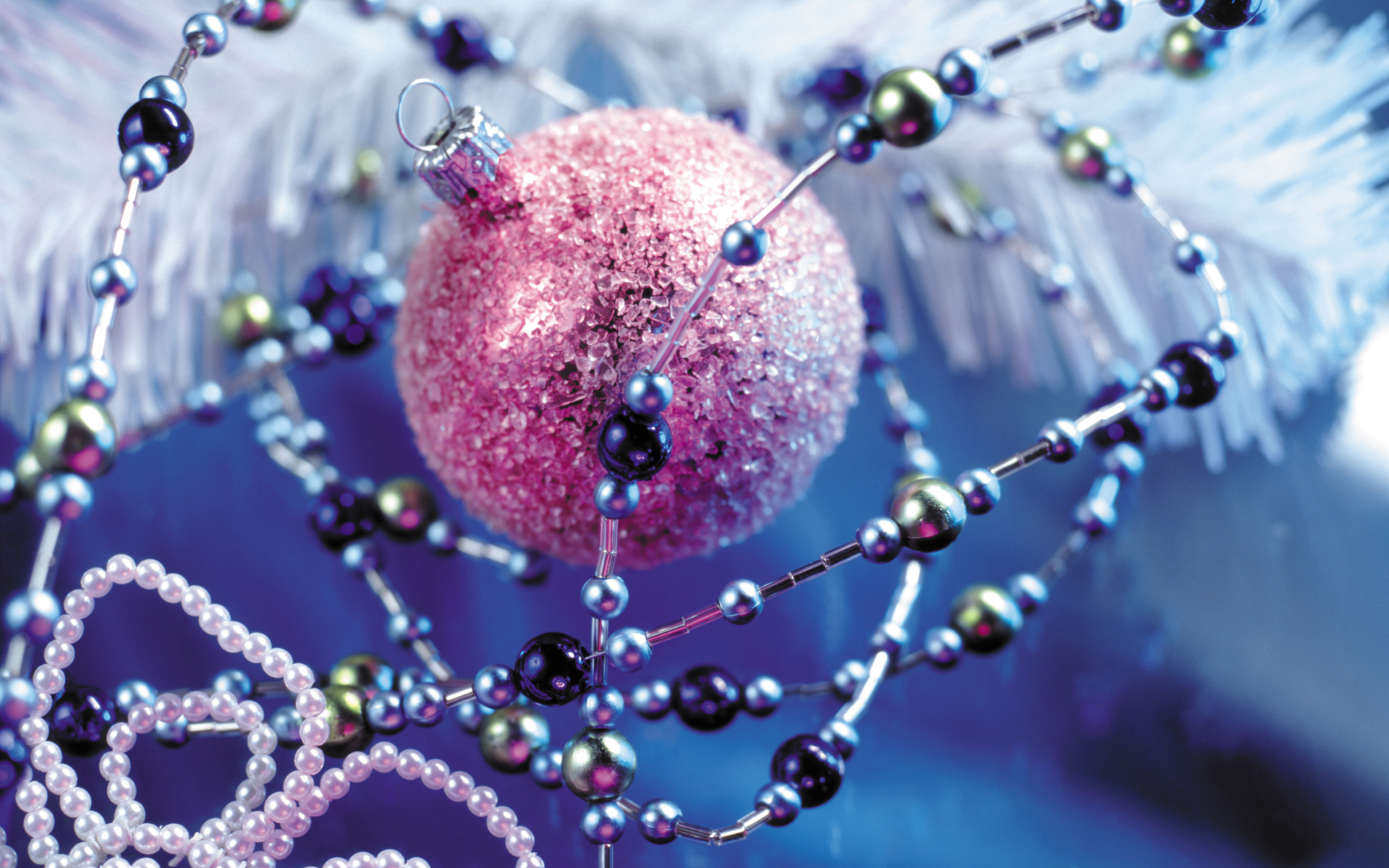 Скачать обои для рабочего стола Великолепная розовая игрушка окруженная бусами и фото