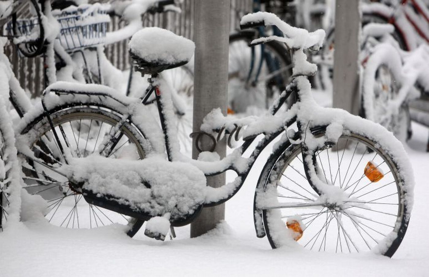 Скачать обои для рабочего стола Велосипед в снегу и фото