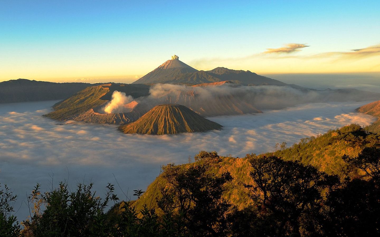 Скачать обои для рабочего стола Вершина гор в тумане и фото