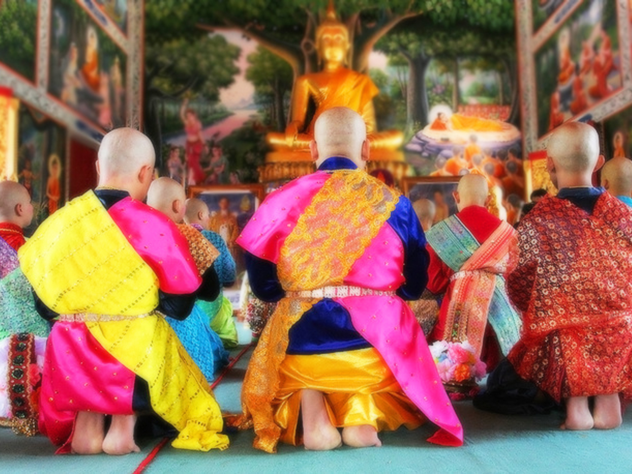 Скачать обои для рабочего стола Верующие перед статуей Будды и фото