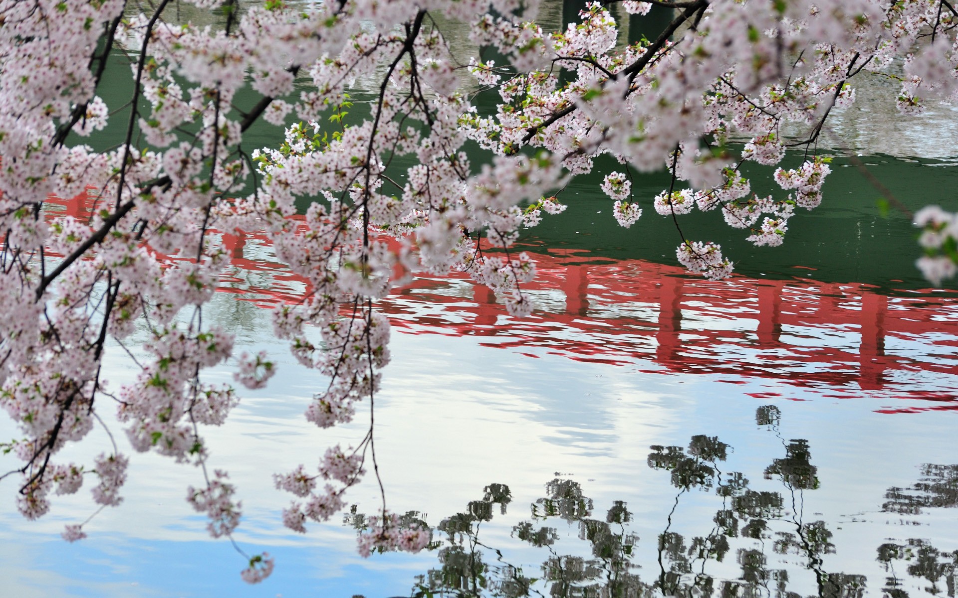 Скачать обои для рабочего стола Весеннее цветение над водоемом и фото