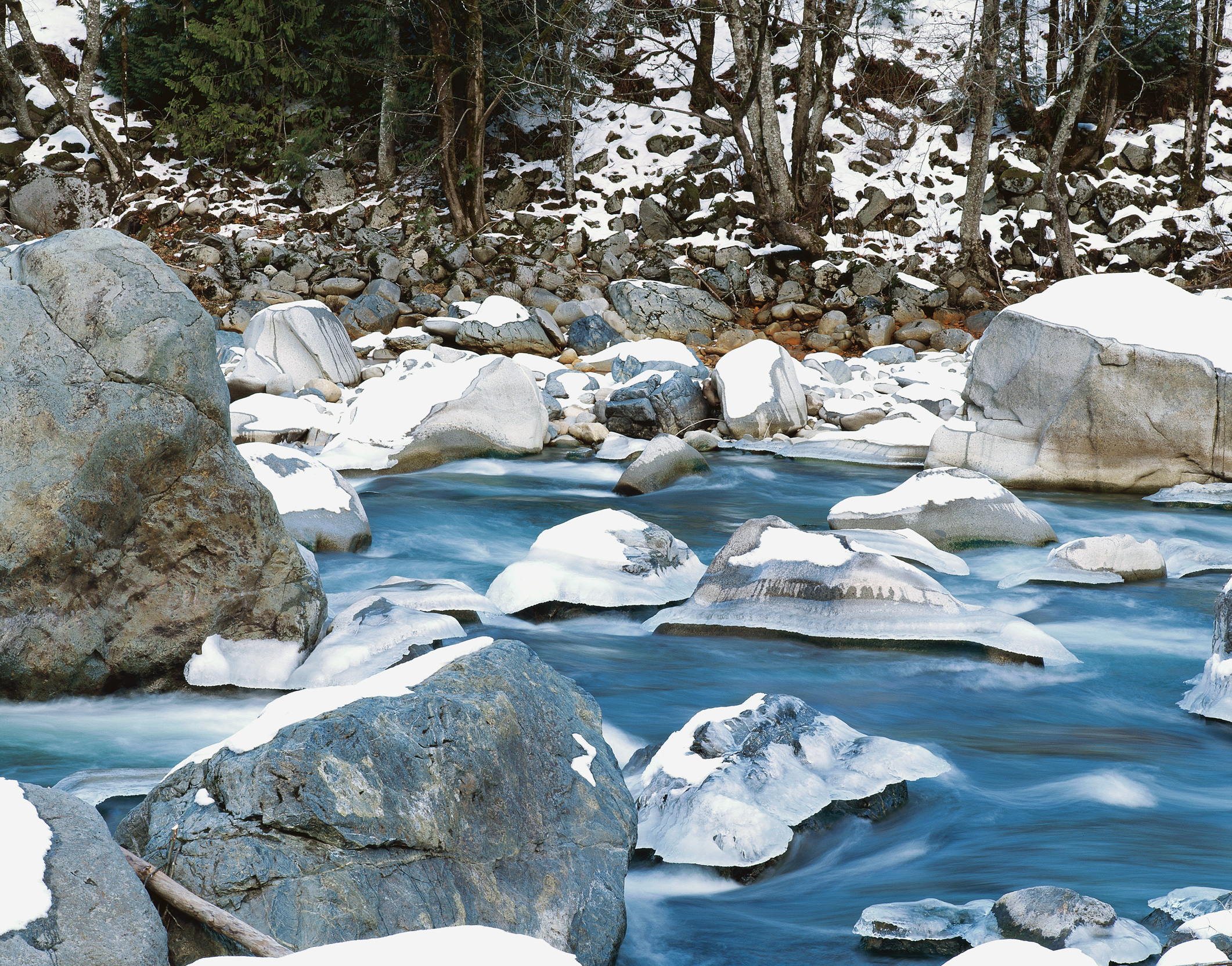 Обои Весенний ручей, со льдинками на чистой голубой воде