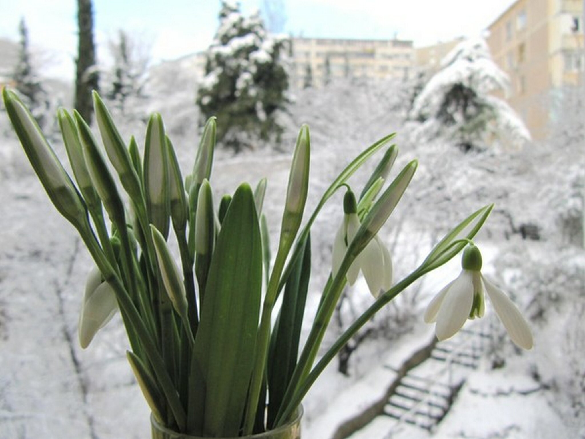 Скачать обои для рабочего стола Весна на подоконнике и фото