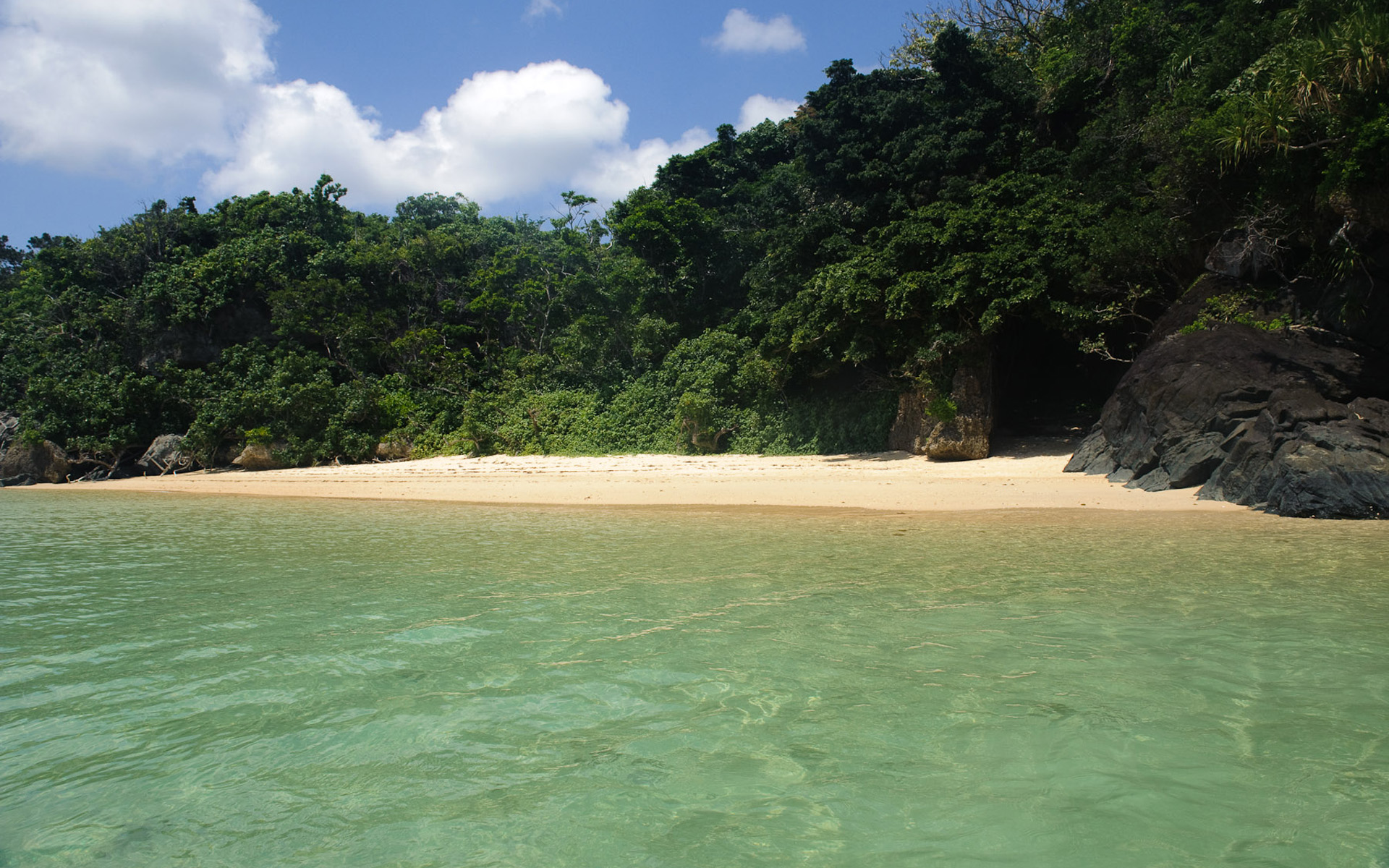 Скачать обои для рабочего стола Вход в пещеру на пляже. Морской берег и фото