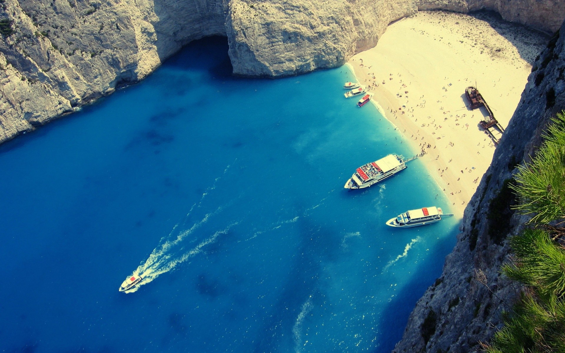 Скачать обои для рабочего стола Вид буxты между скалами и фото