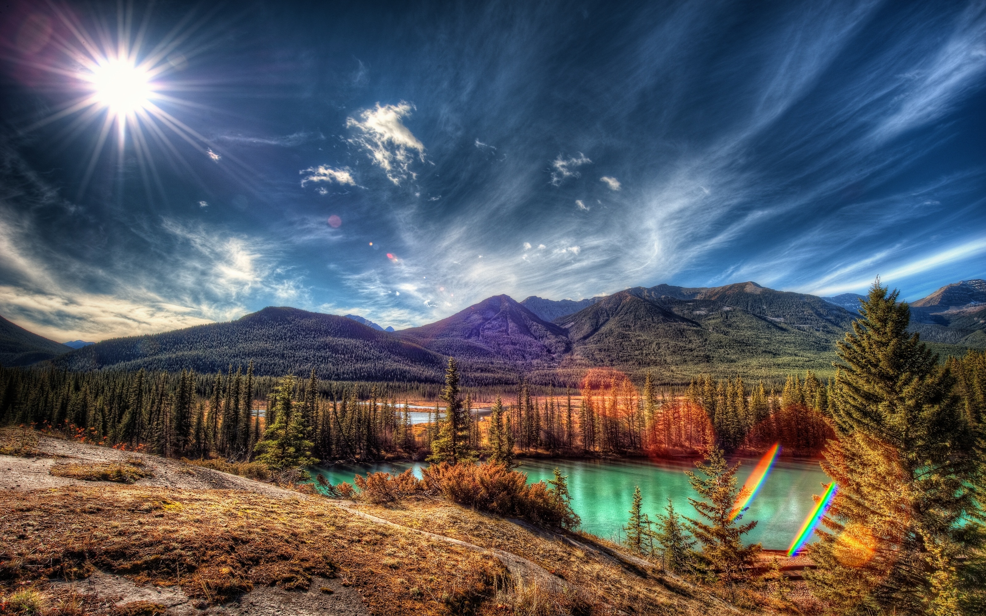 Скачать обои для рабочего стола Вид на горы при ясном небе и фото