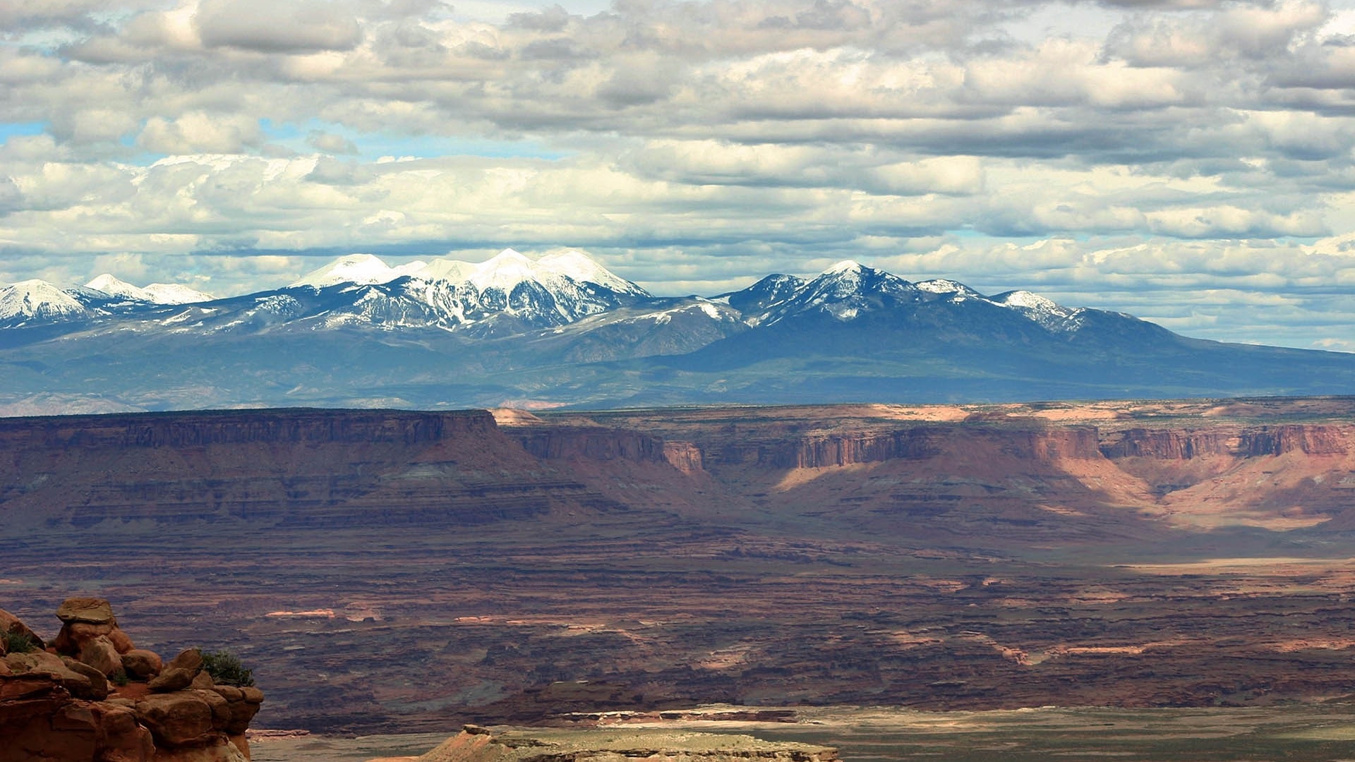 Похожие обои на Вид на каньон и горы вдали:
