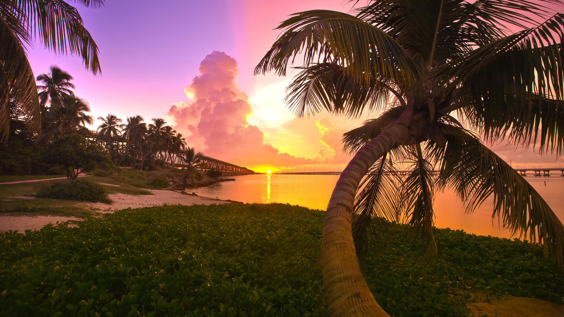 Скачать обои для рабочего стола Вид на солнце с острова и фото