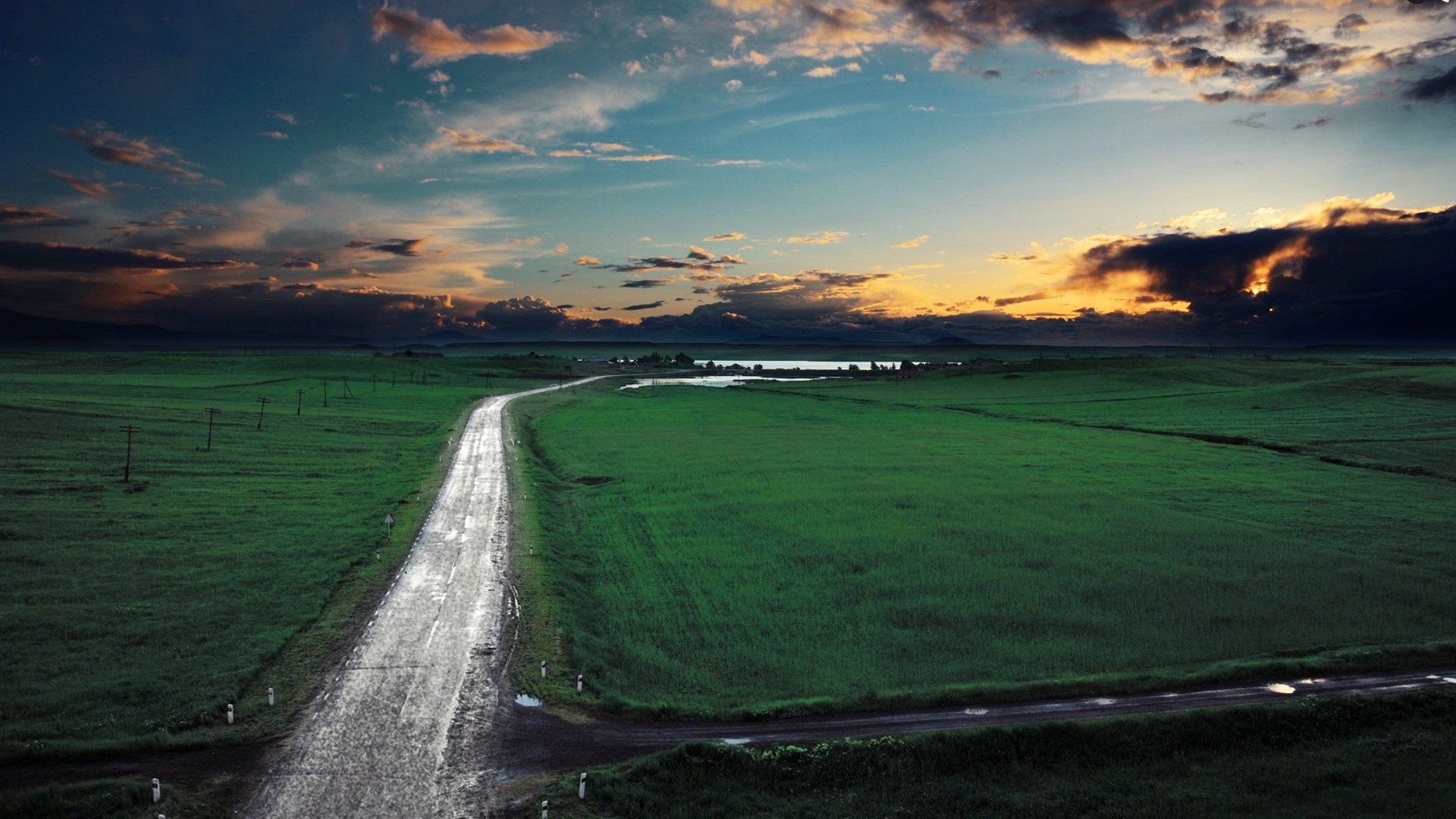 Скачать обои для рабочего стола Вид полей и облаков и фото