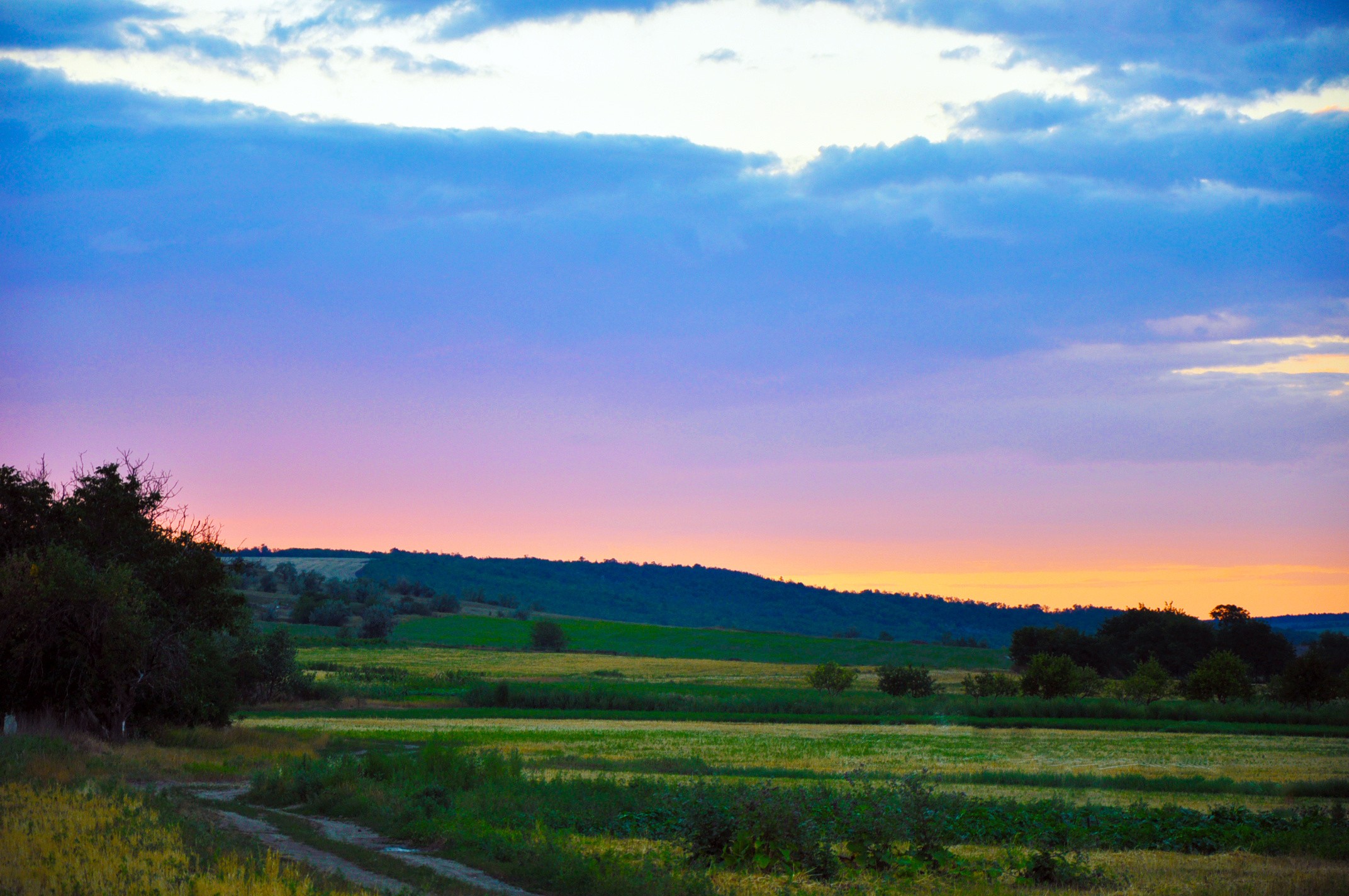 Скачать обои для рабочего стола Вид поля на закате и фото