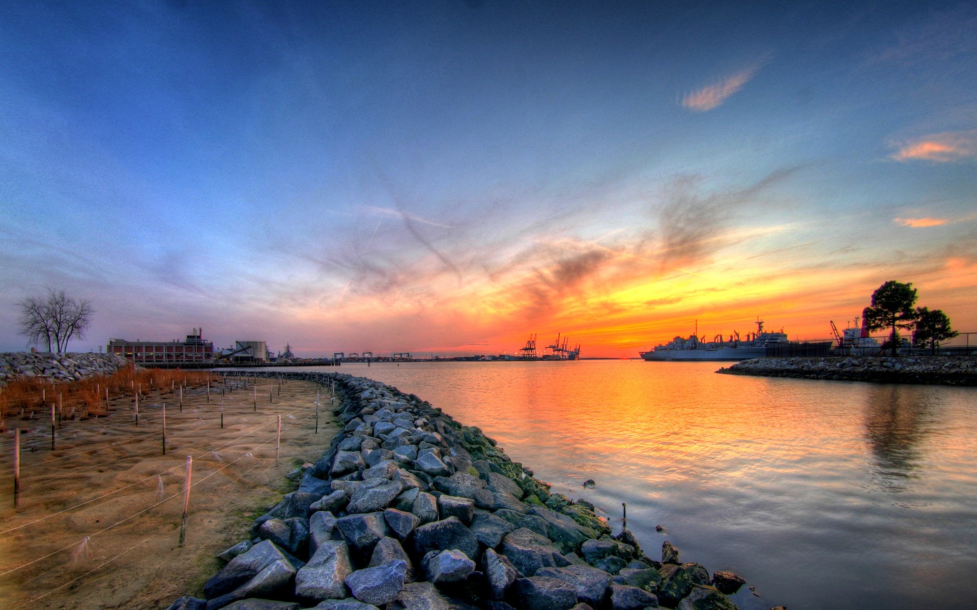 Скачать обои для рабочего стола Вид заката с берега и фото