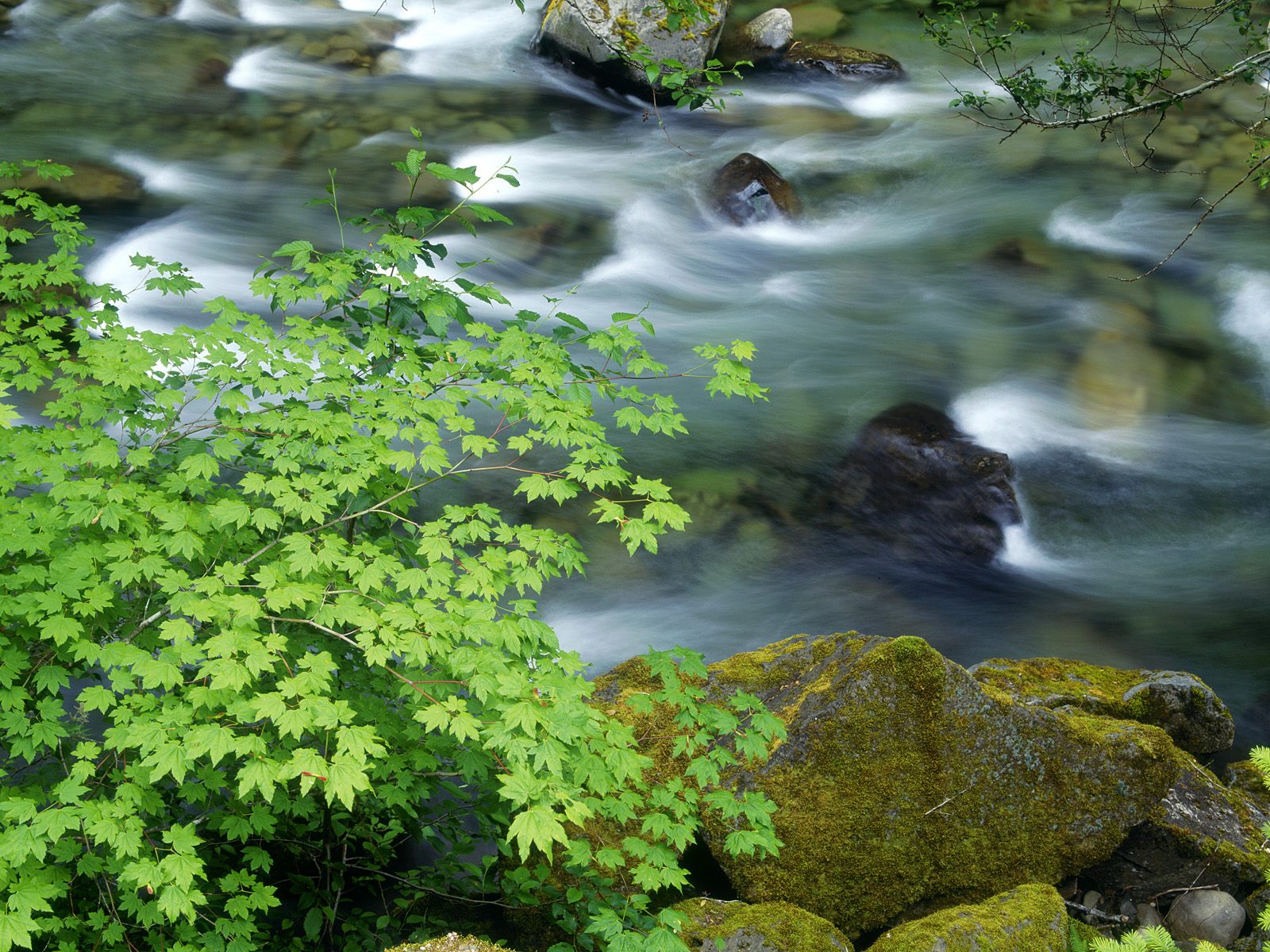 Скачать обои для рабочего стола Vine Maples Hang Over the Soleduck River, Olympic National Park, Washington и фото