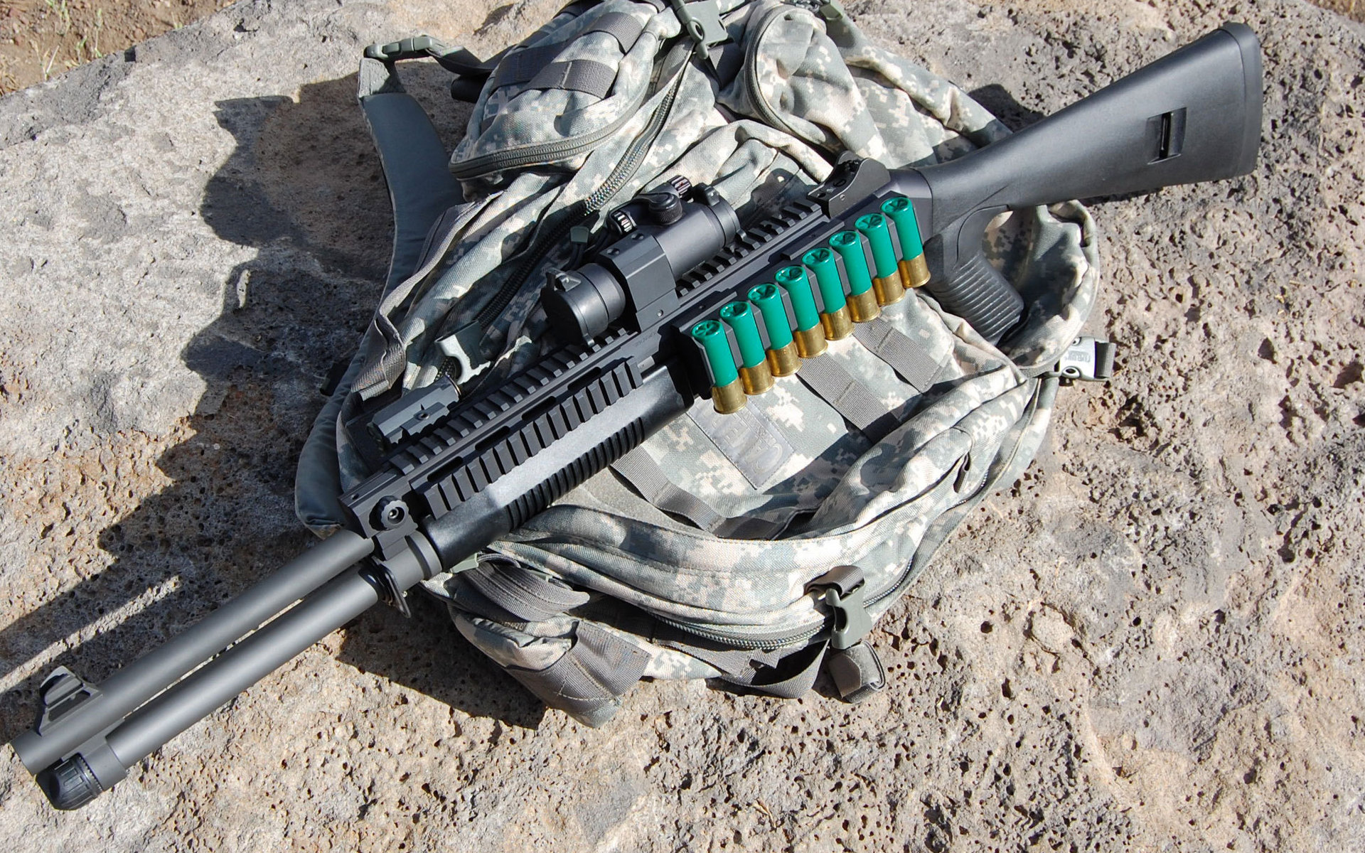 Скачать обои для рабочего стола Винтовка лежит на рюкзаке и фото