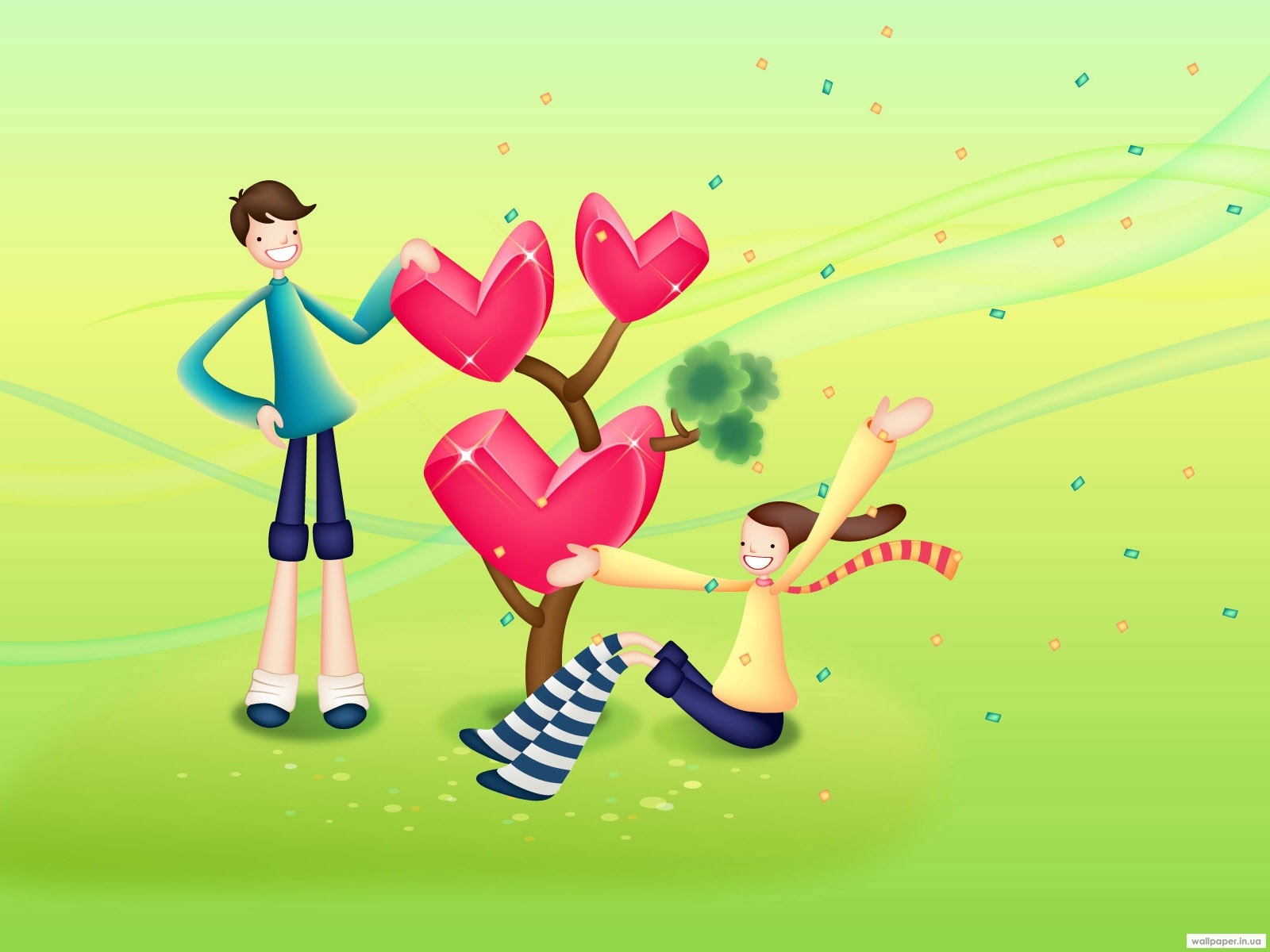Скачать обои для рабочего стола Влюбленные у дерева любви и фото