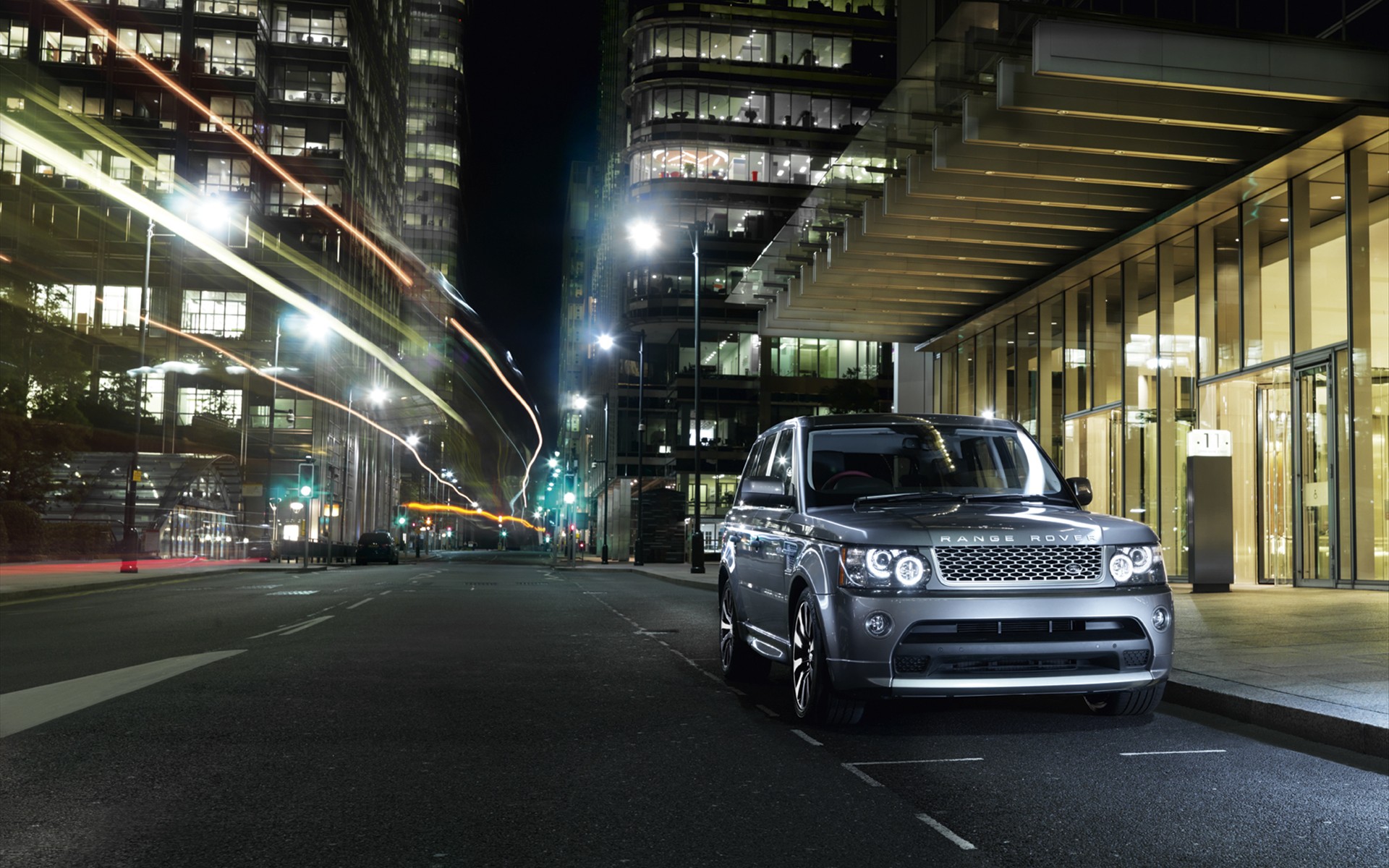 Скачать обои для рабочего стола Внедорожник Range Rover в ночном дороге и фото