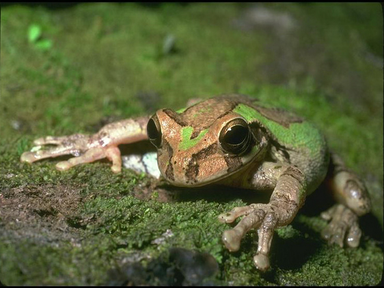 Скачать обои для рабочего стола Внимательный взгляд пятнистой лягушки и фото