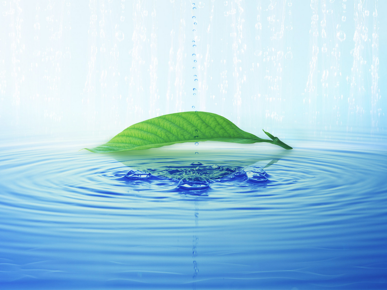 Скачать обои для рабочего стола Вода и лист и фото