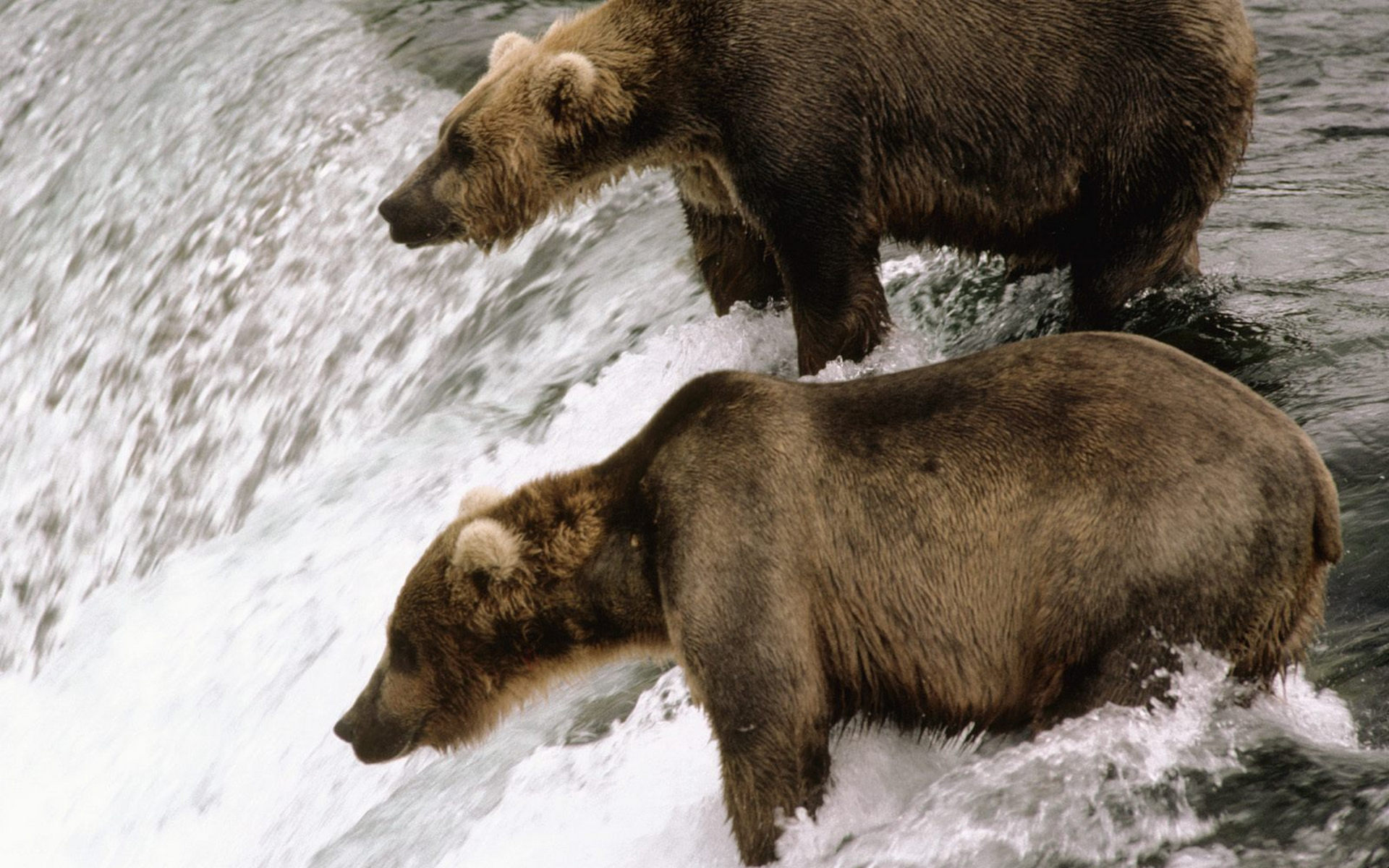 Скачать обои для рабочего стола Водопад и два медведя и фото