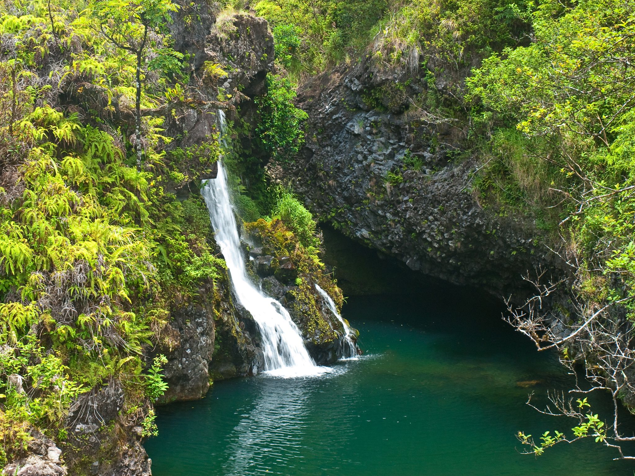 Скачать обои для рабочего стола Водопад и зеленое озеро и фото