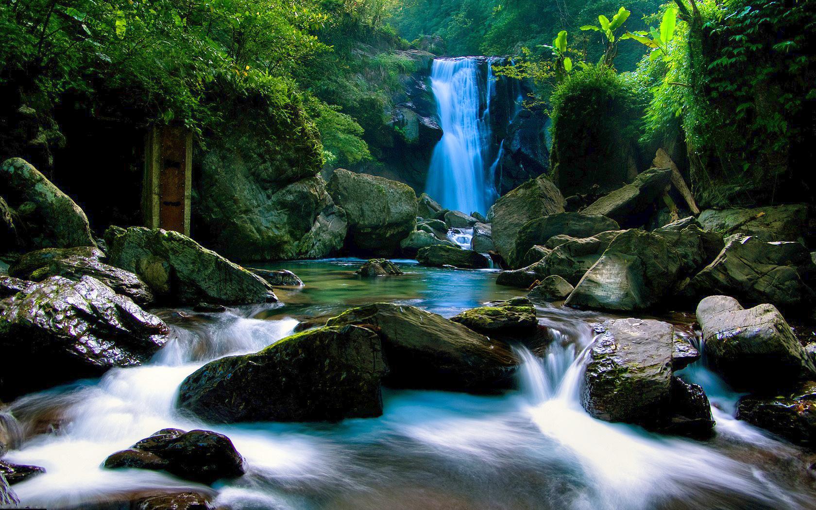Скачать обои для рабочего стола Водопад посреди леса и фото