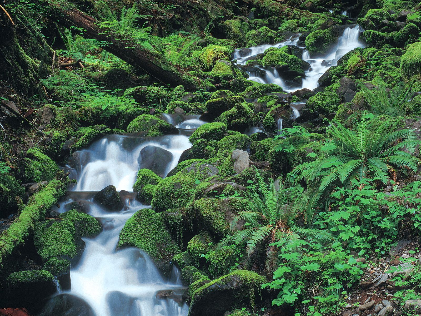 Скачать обои для рабочего стола Водопад сквозь камней поросших мхом и фото