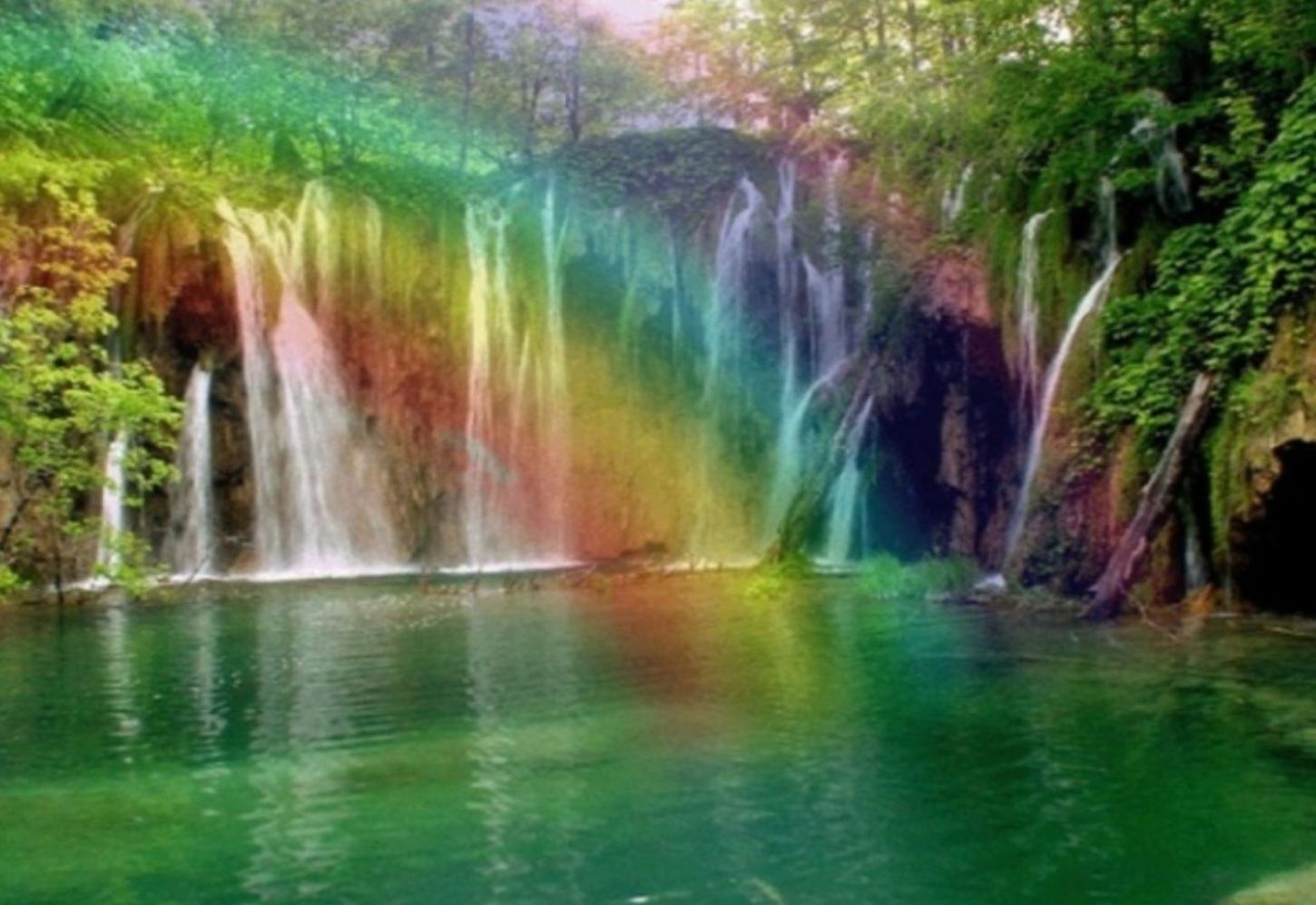Скачать обои для рабочего стола Водопад сквозь радугу и фото